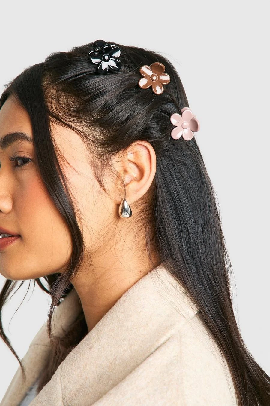 BOOHOO 3 Pack Tonal Flower Hair Mini Clips