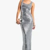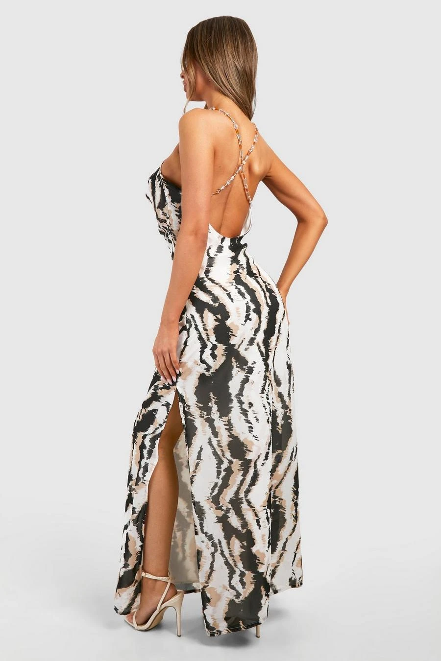 BOOHOO Abstract Beaded Chiffon Maxi Dress
