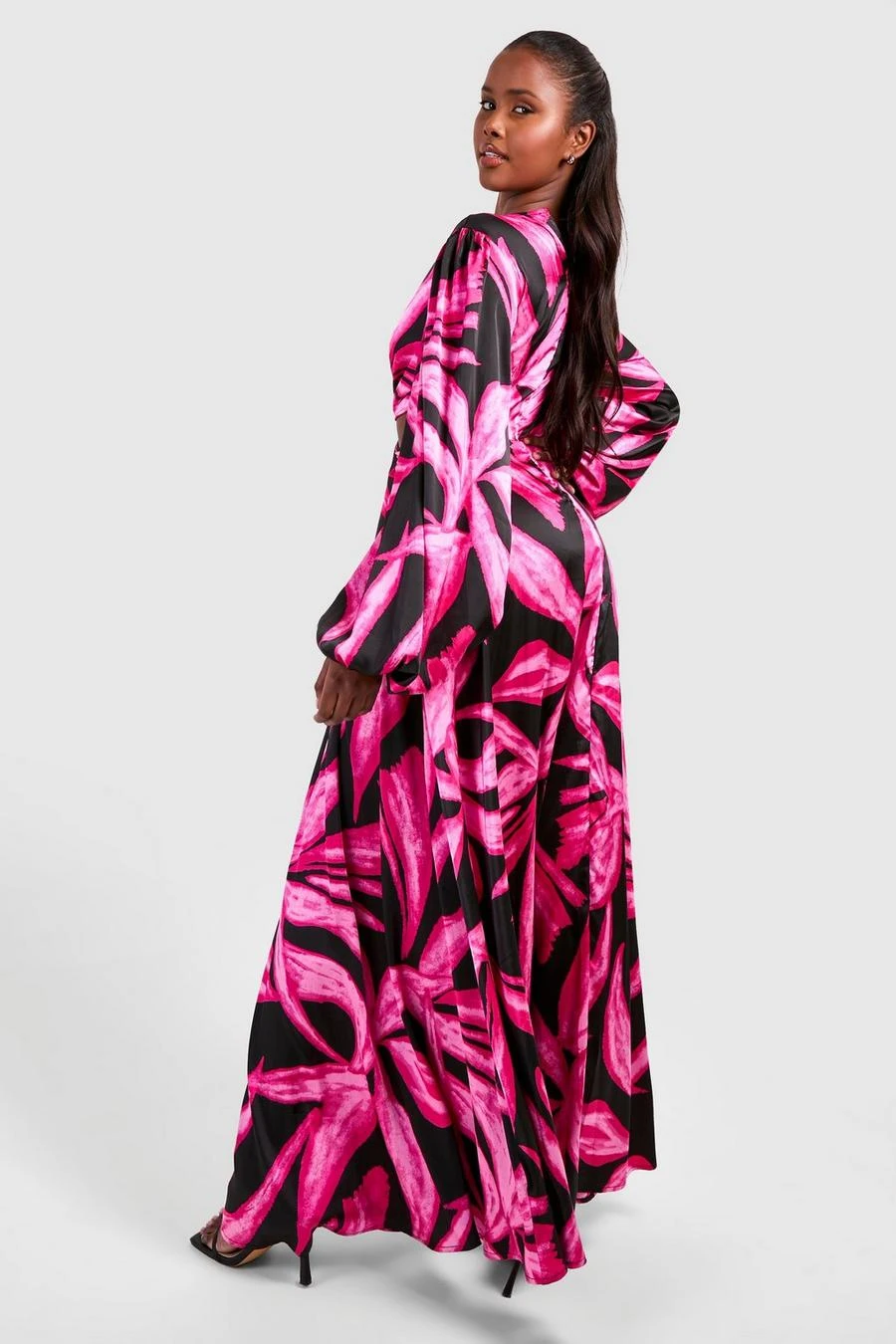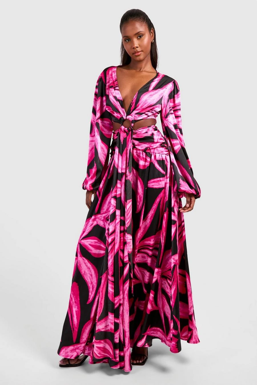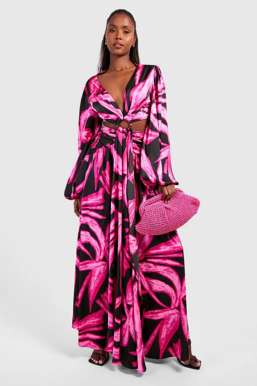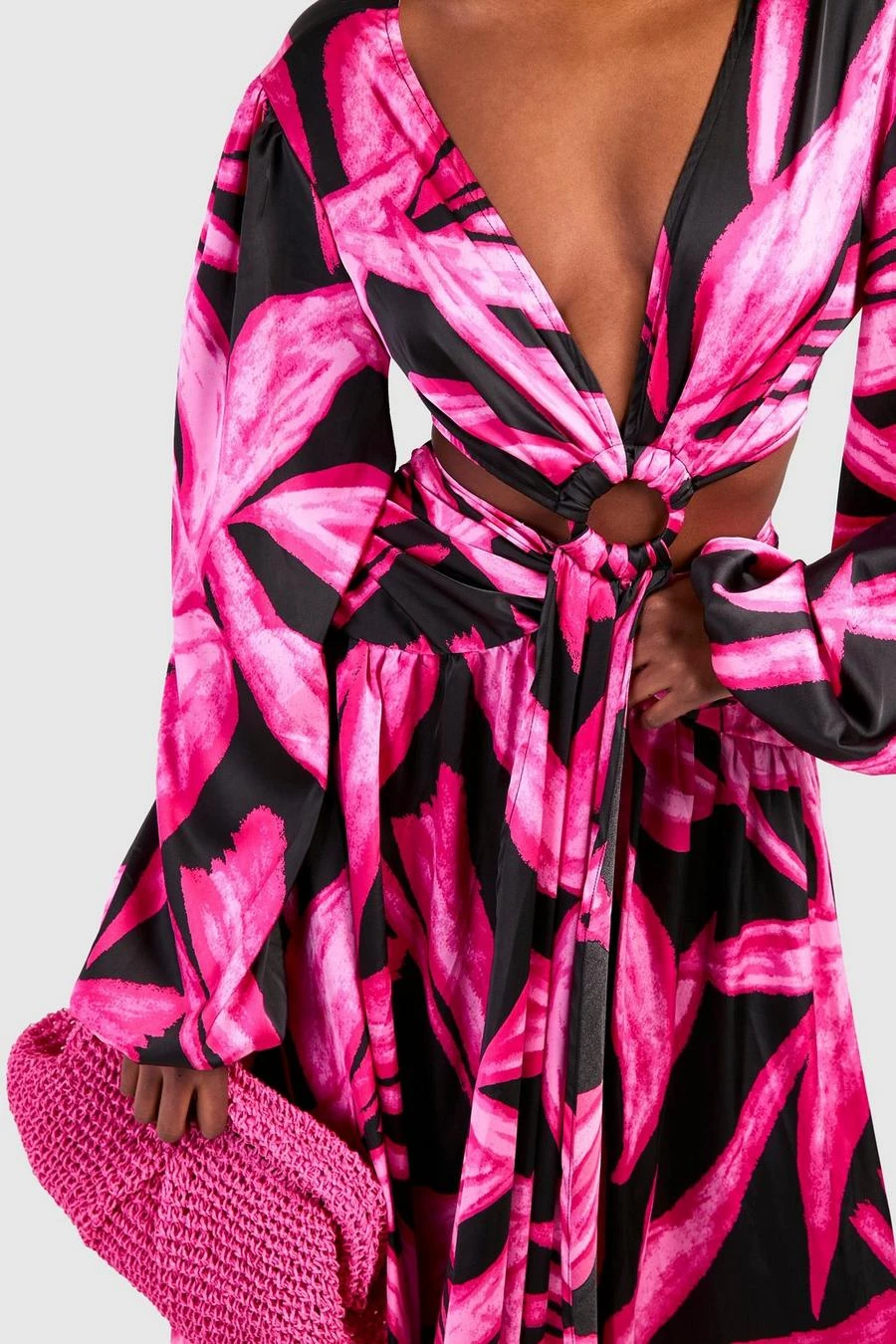 BOOHOO Abstract Print Cut Out Ring Detail Maxi Dress
