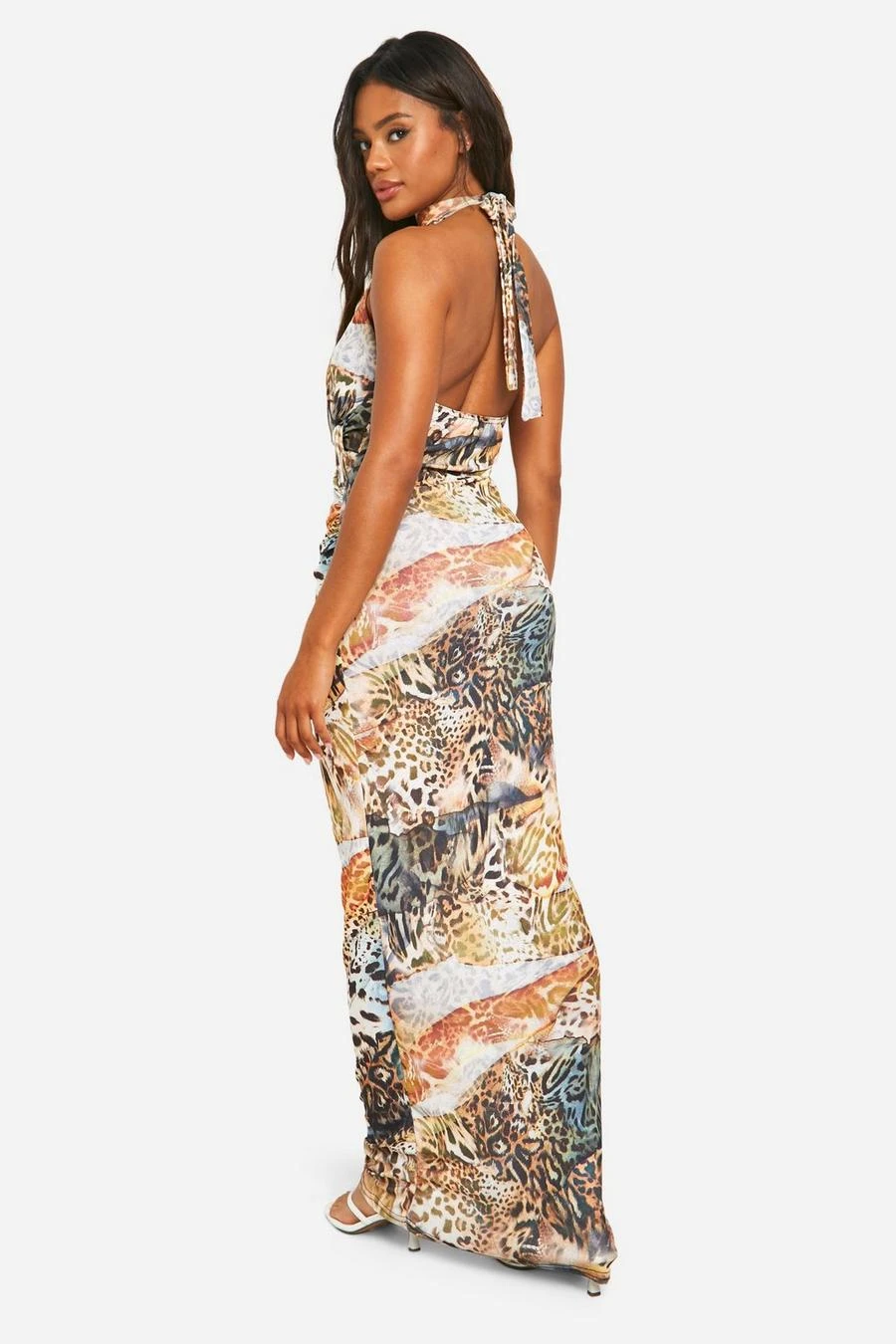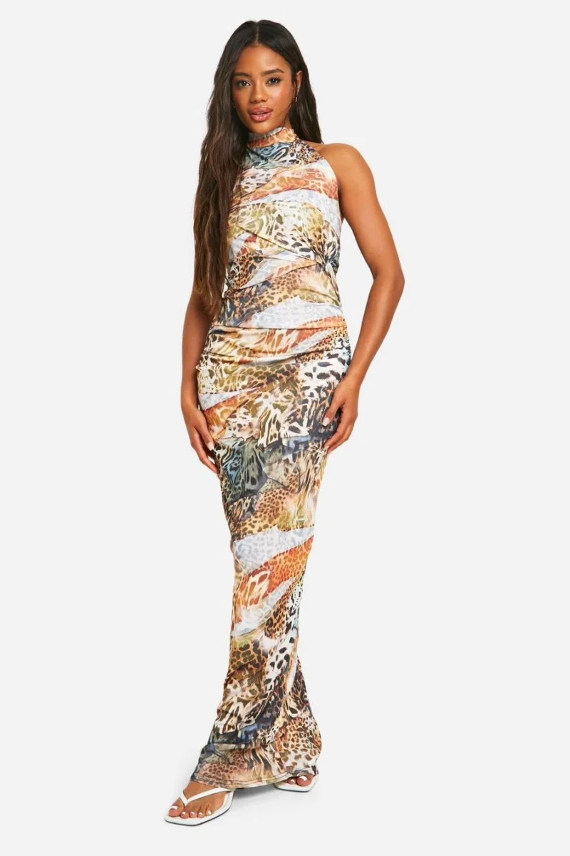 BOOHOO Animal Sheer Halterneck Maxi Dress