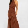 Introducing the dress of the season: this halter neck dress. A classic halter neck style with a strap that runs from the front of the garment around the back of the neck leaving the upper back uncovered, show some back with this killer style. Make moves in a figure skimming halter neck maxi dresses or go for a sexy midi style, depending on the vibe. Pair a halter dress with strappy heels and a mini bag or opt for simple flats…sorted.