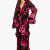 BOOHOO Assymetric Ruched Floral Mesh Maxi Dress