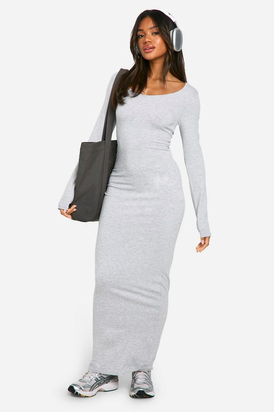 BOOHOO Basic Long Sleeve Scoop Neck Maxi Dress
