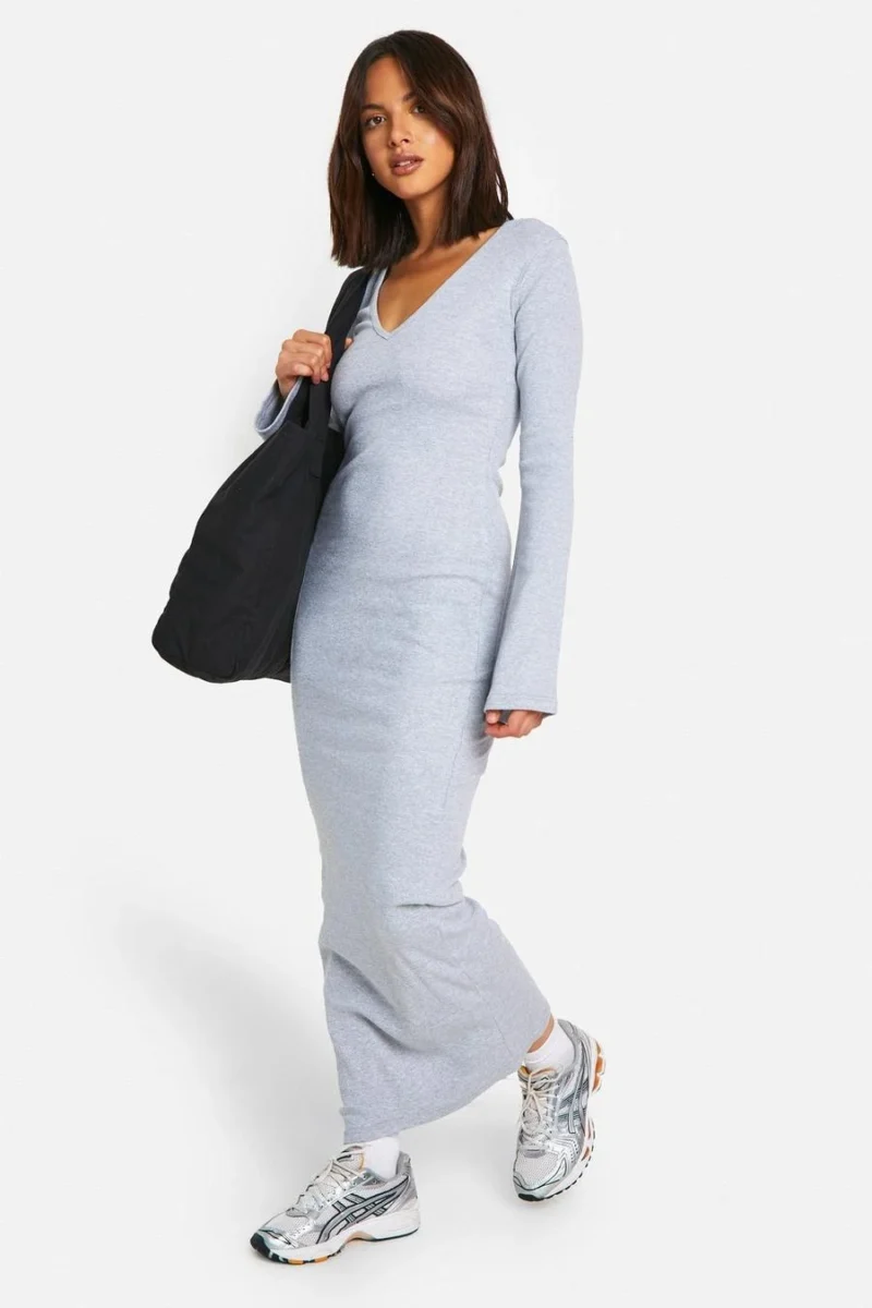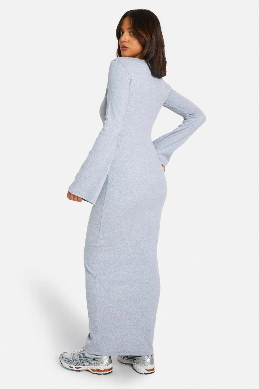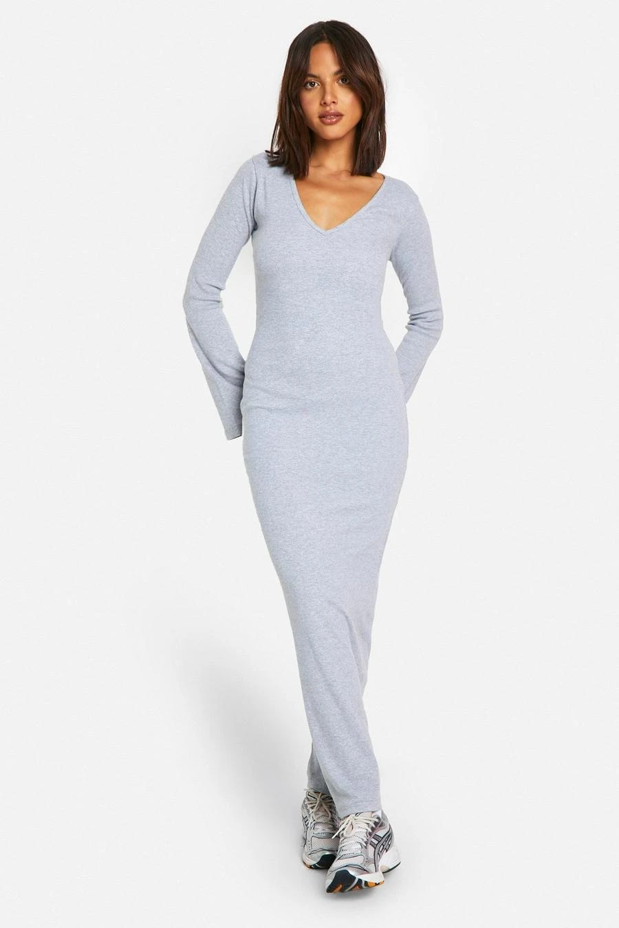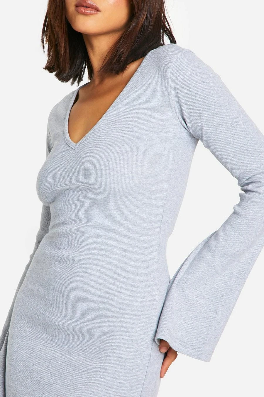 BOOHOO Basic Rib Flare Sleeve V Neck Dress
