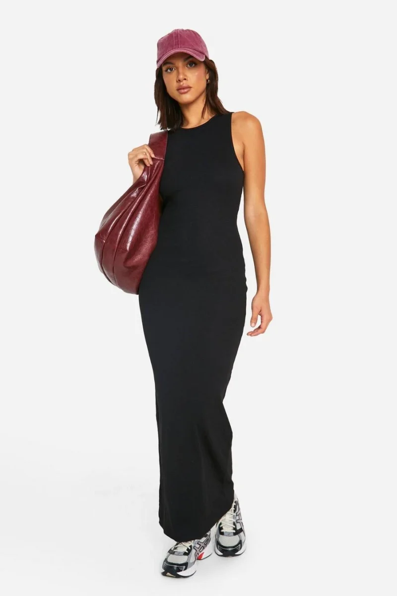 BOOHOO Basic Rib Racer Neck Maxi Dress