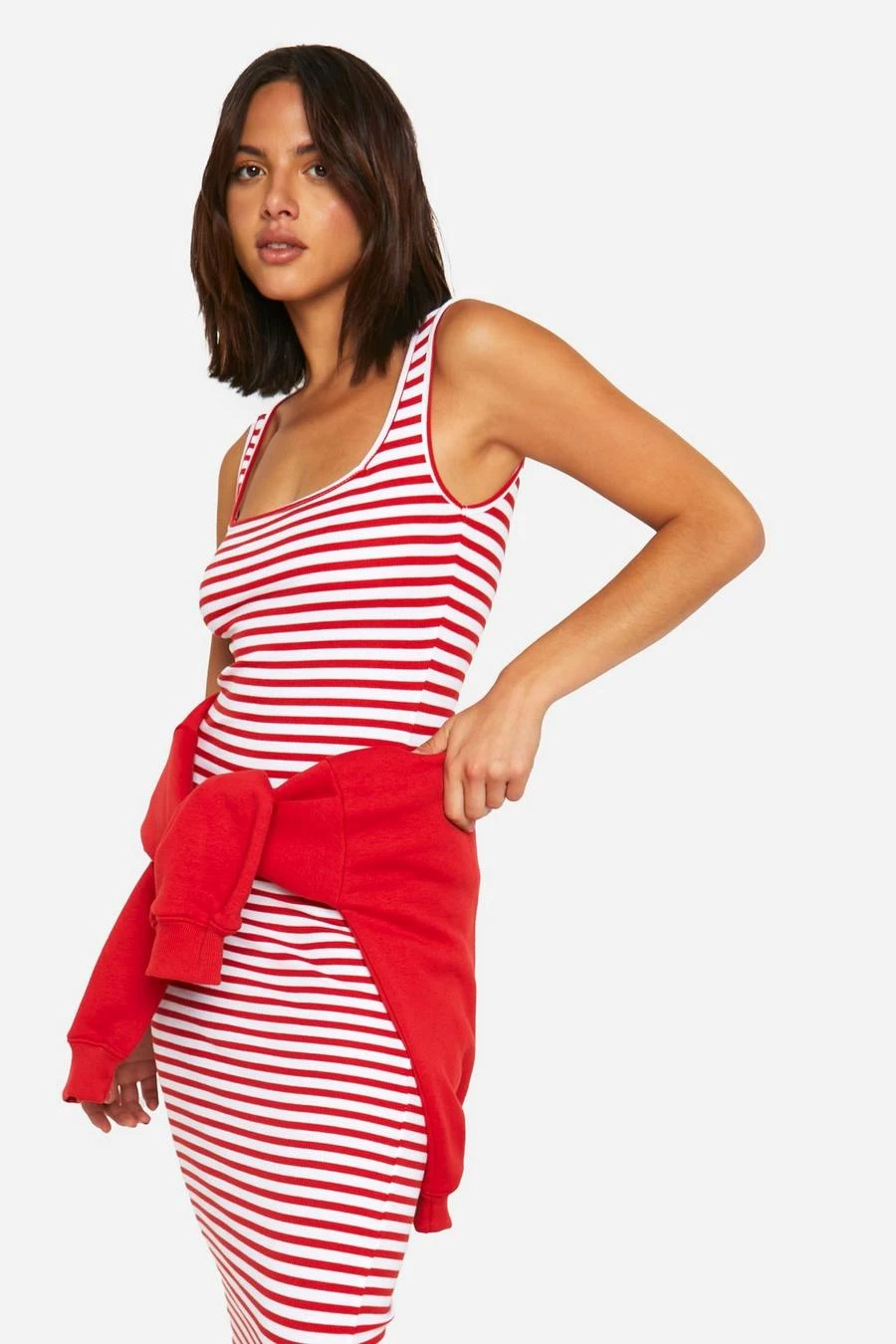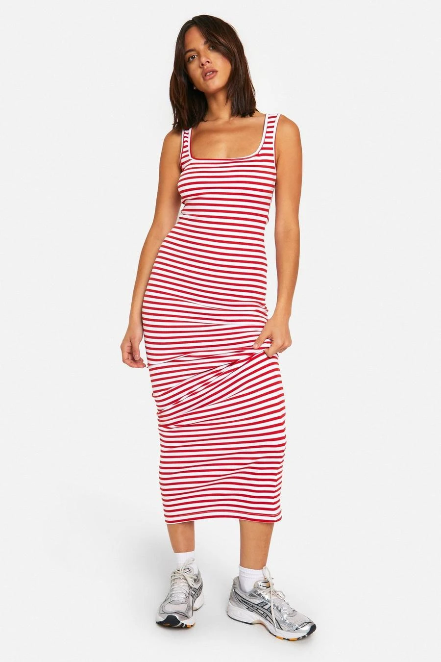 BOOHOO Basic Rib Stripe Square Neck Maxi