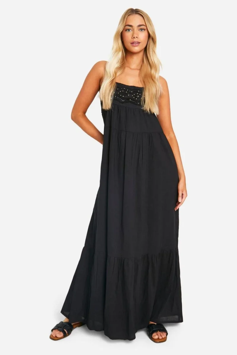 BOOHOO Bead Embellished Smock Maxi Dress