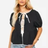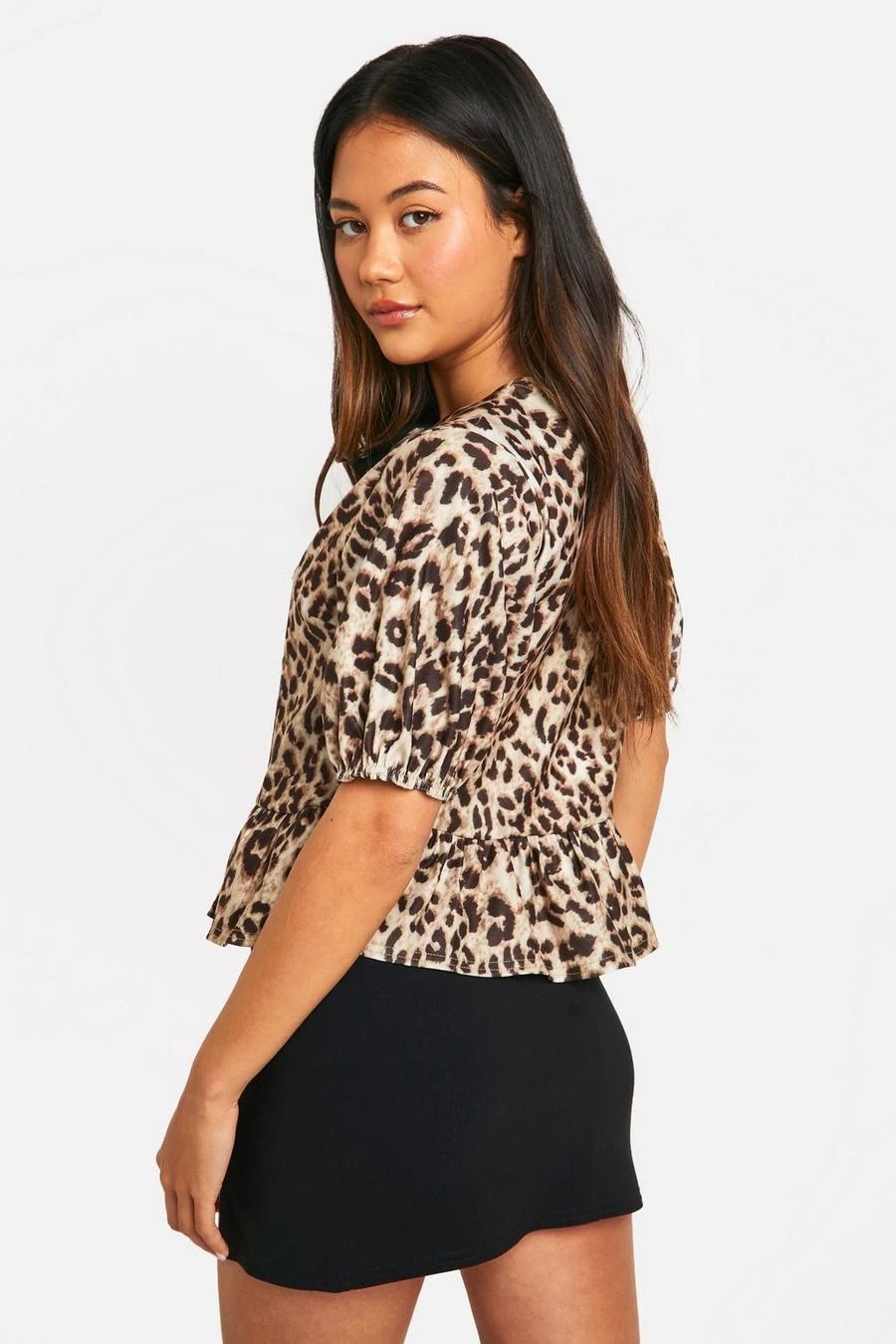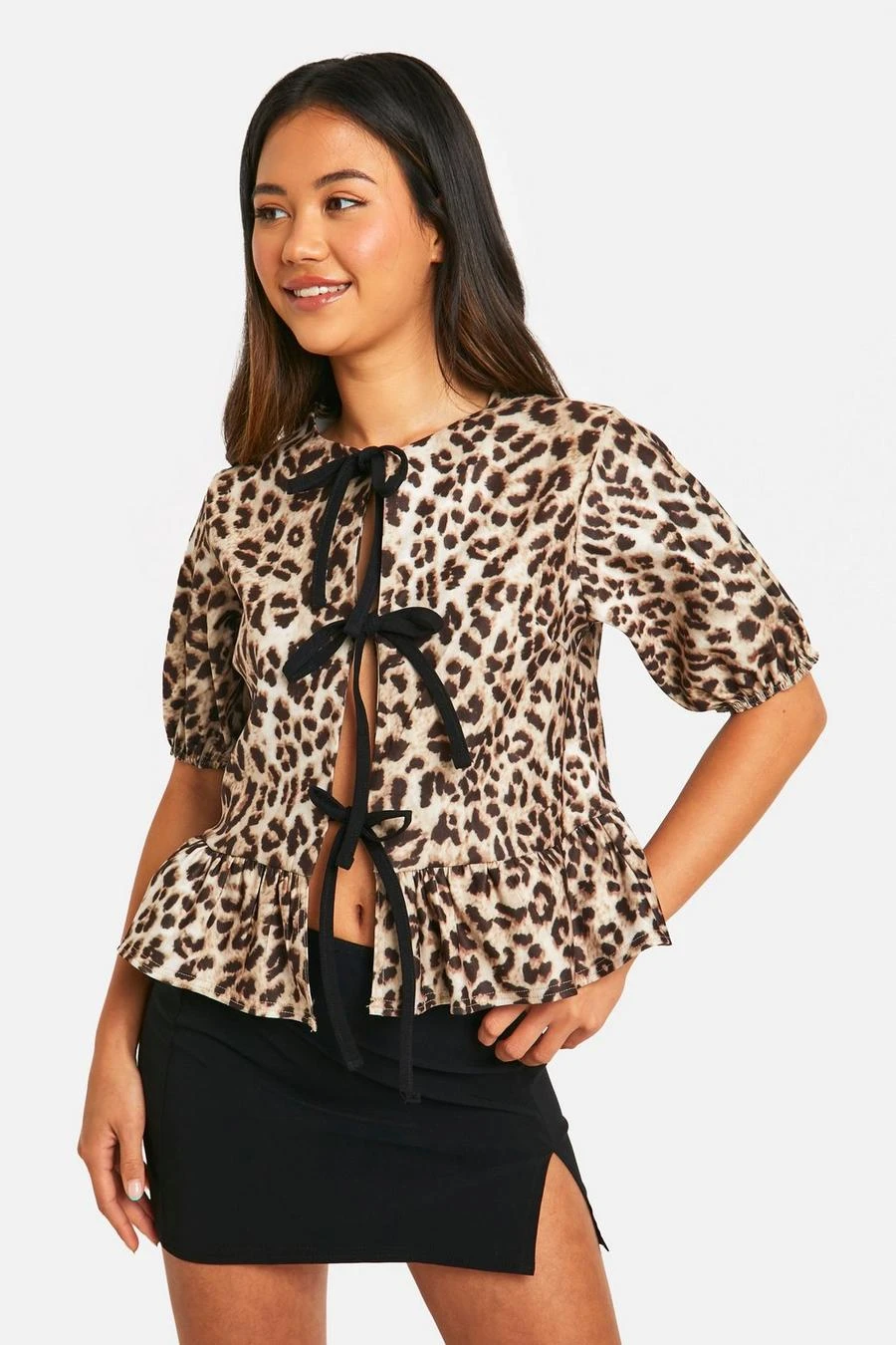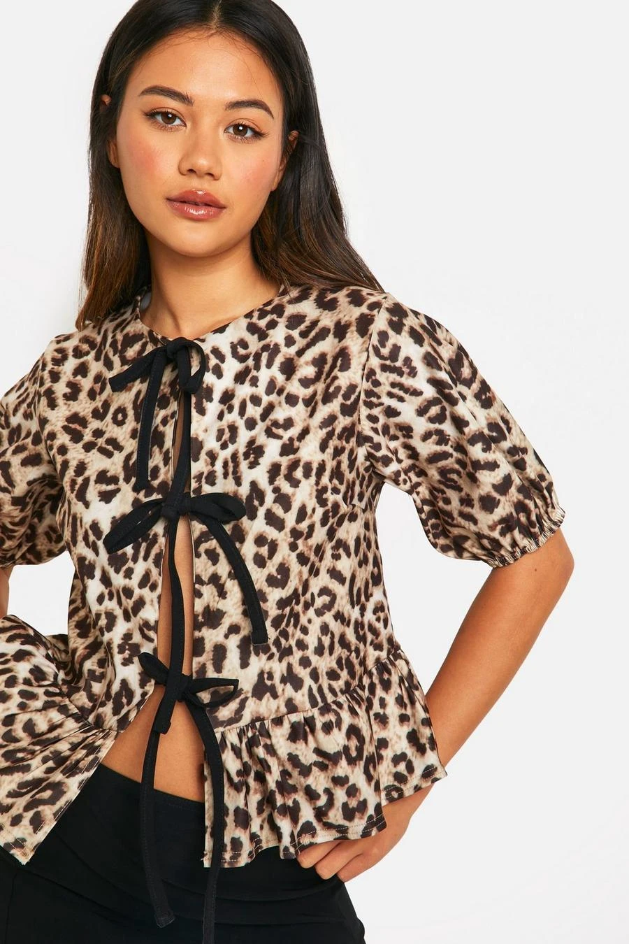 BOOHOO Bengaline Leopard Print Tie Front Smock Top