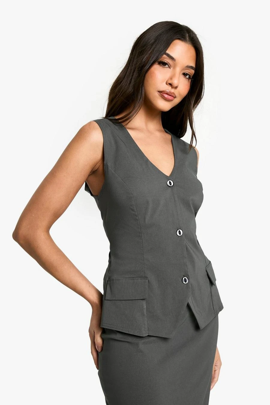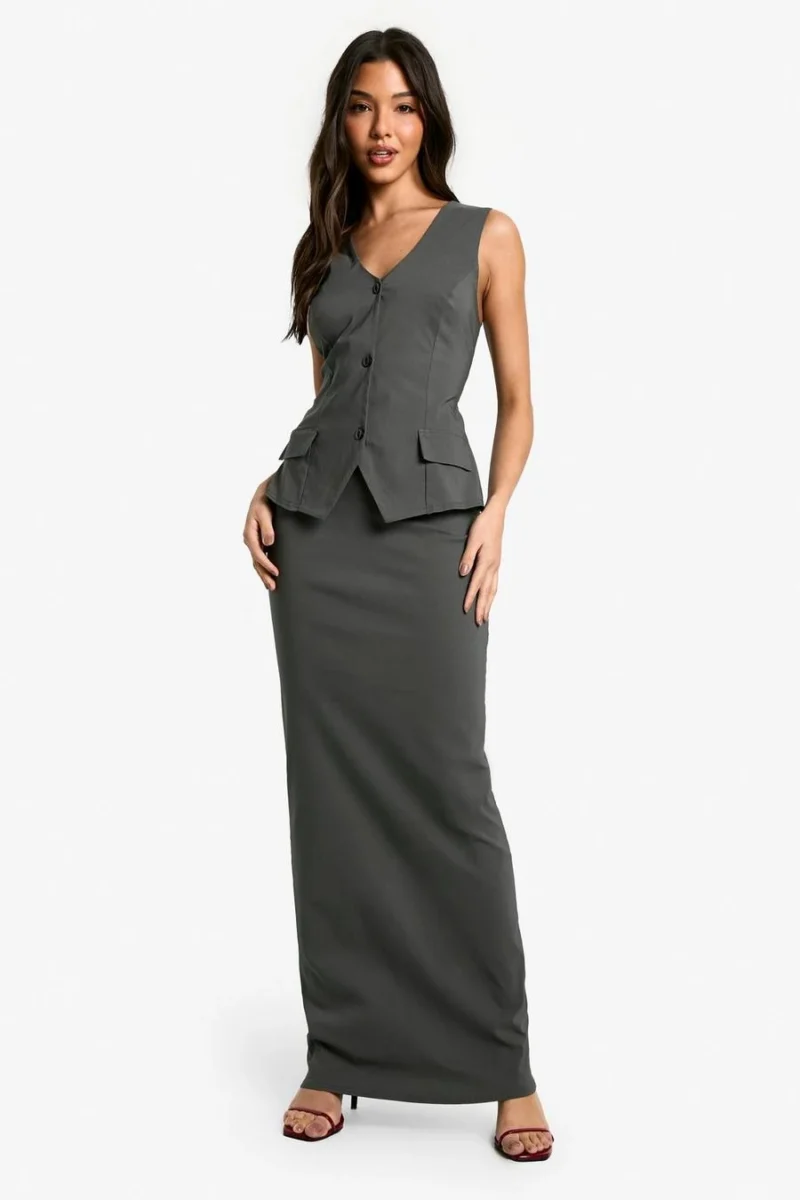 BOOHOO Bengaline Plunge Waistcoat Maxi Dress