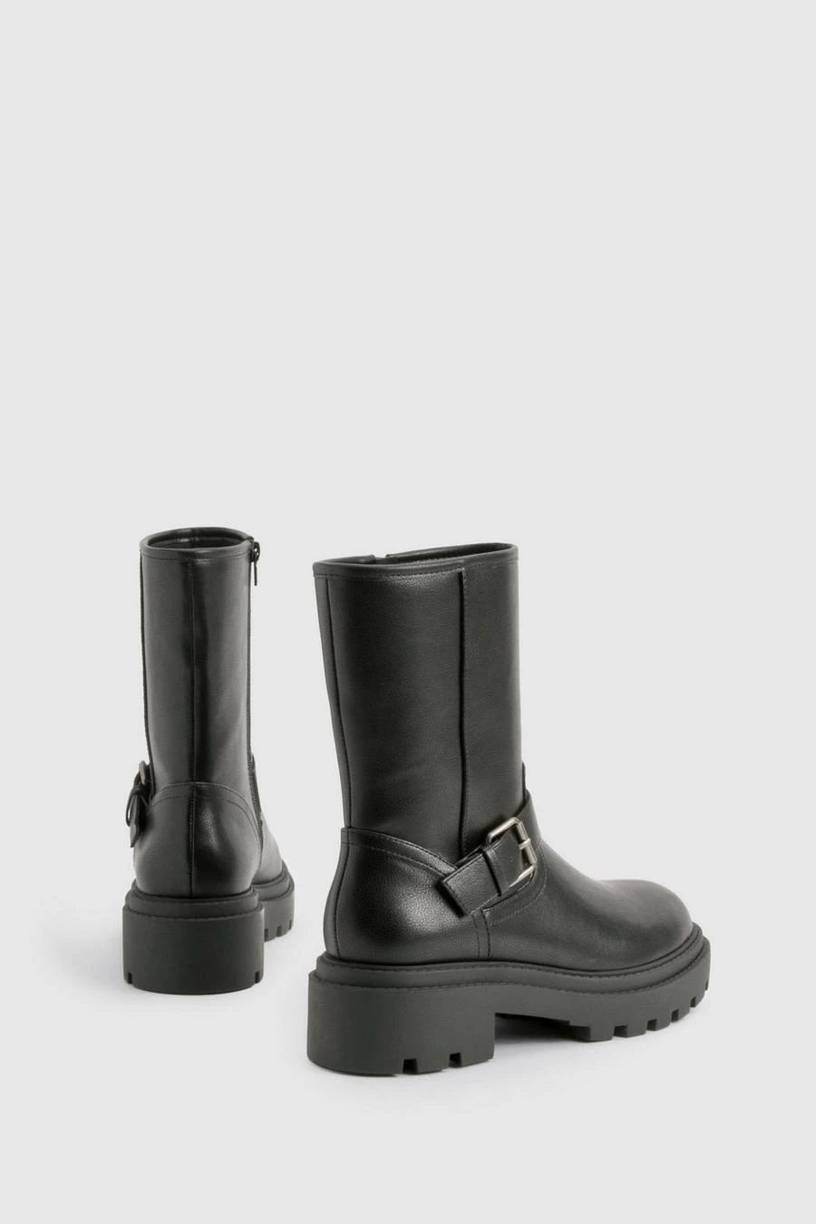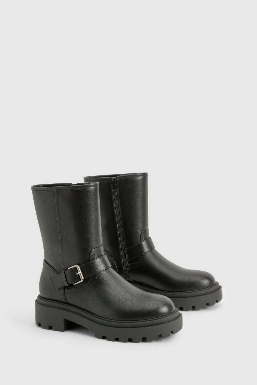 BOOHOO Biker Buckle Detail Chunky Ankle Boot