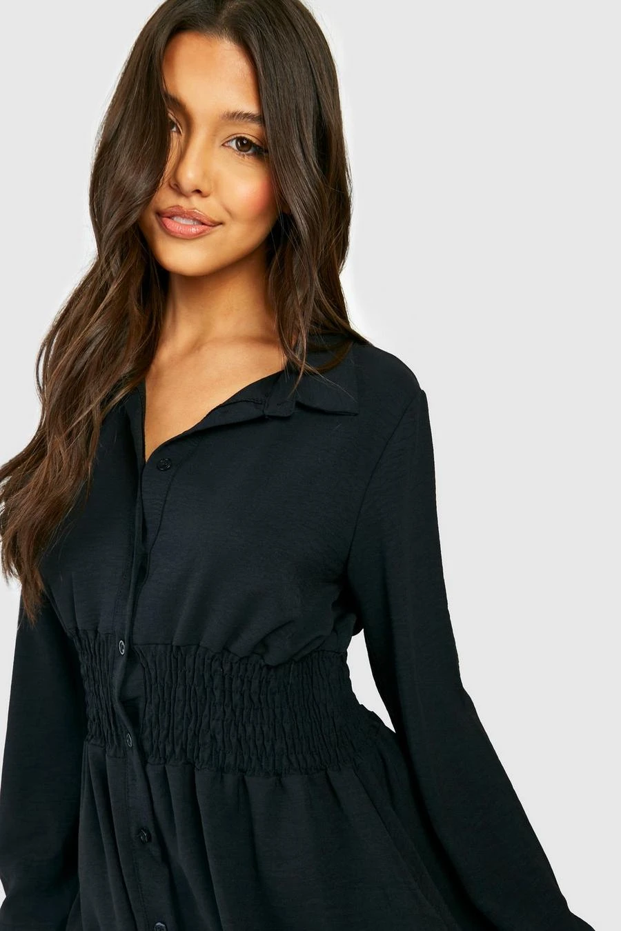 BOOHOO Black Hammered Shirred Waist Shirt