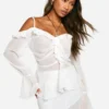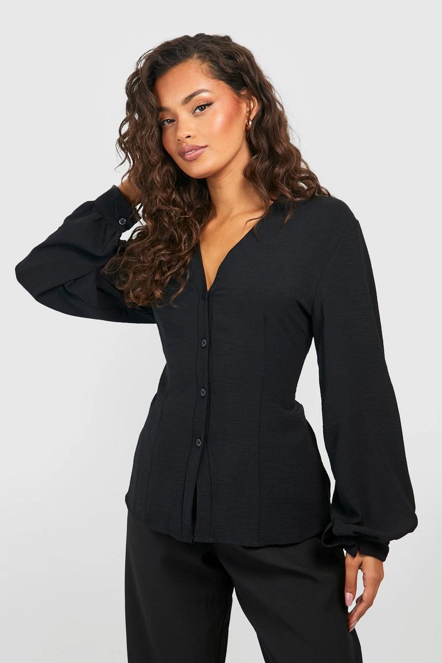 BOOHOO Black Hammered Volume Sleeve Fitted Blouse