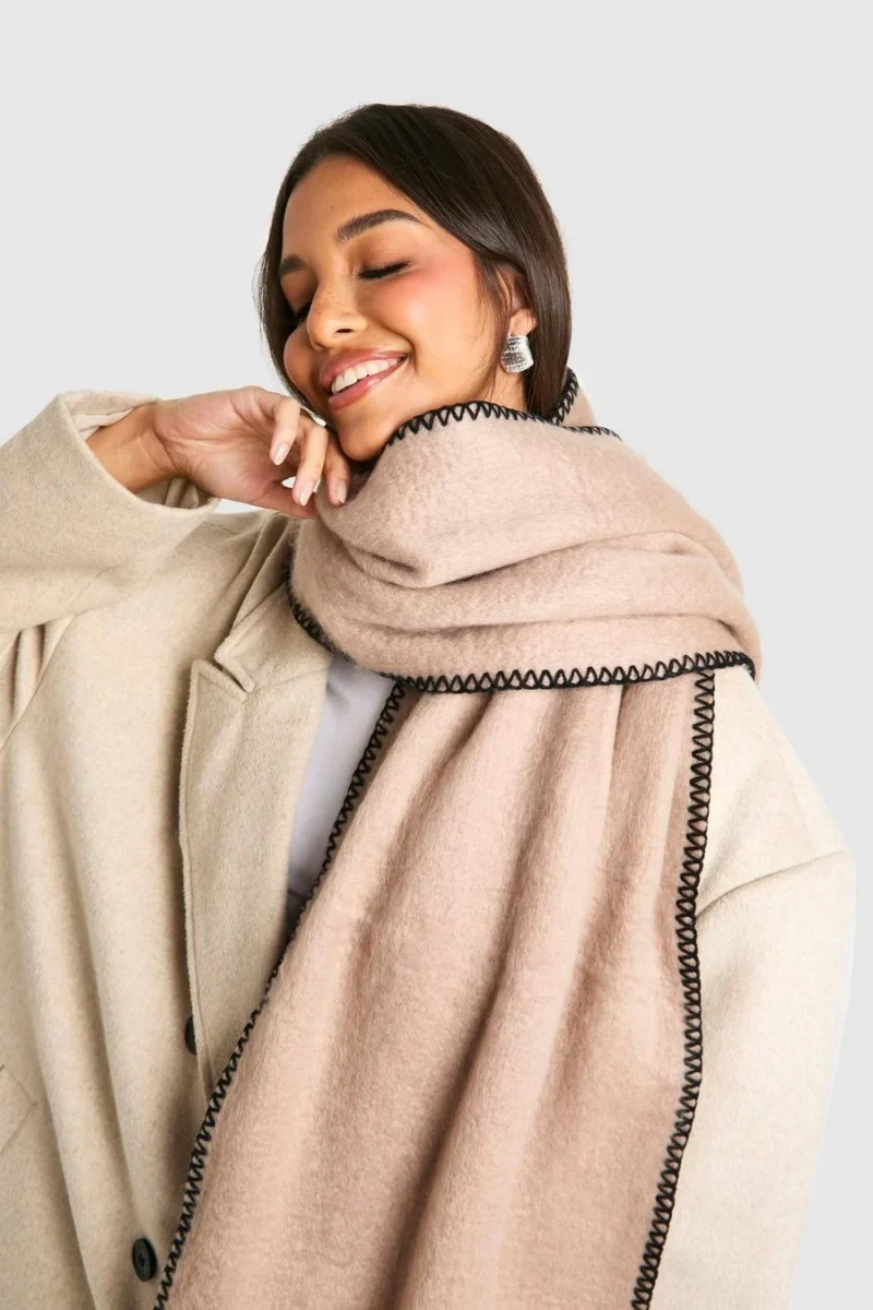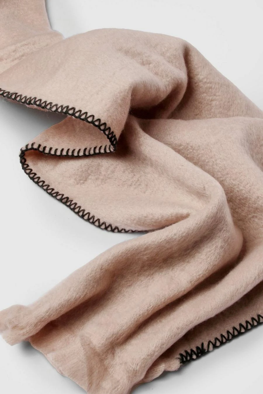 BOOHOO Blanket Stitch Trim Knitted Scarf