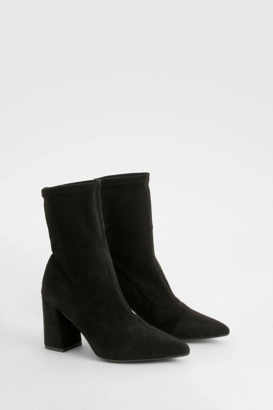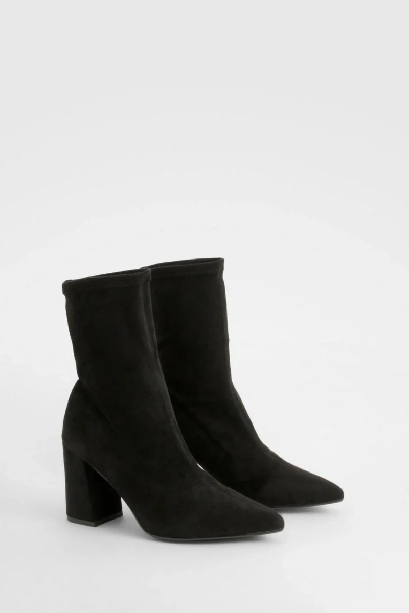 BOOHOO Block Heel Faux Suede Pointed Sock Boots