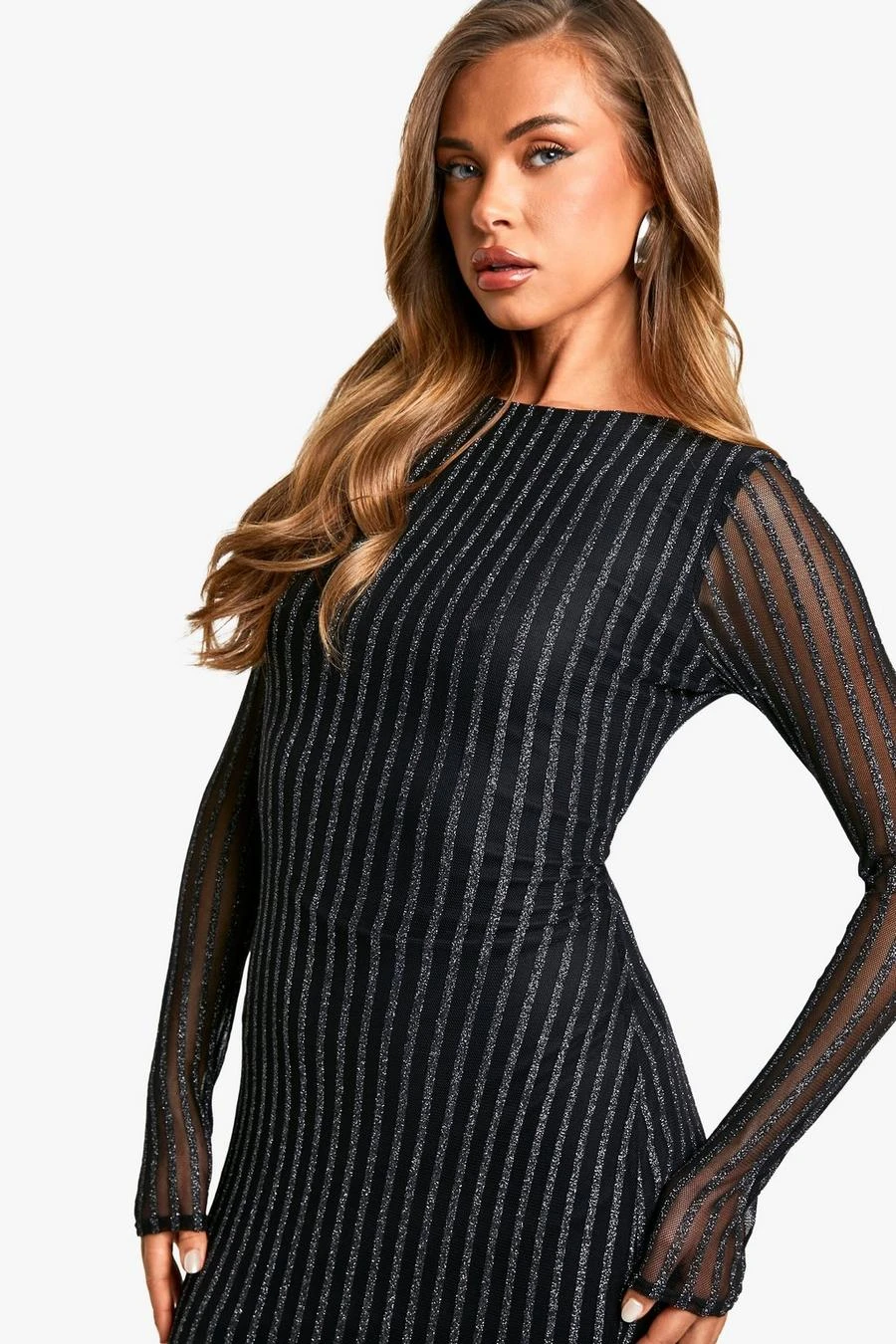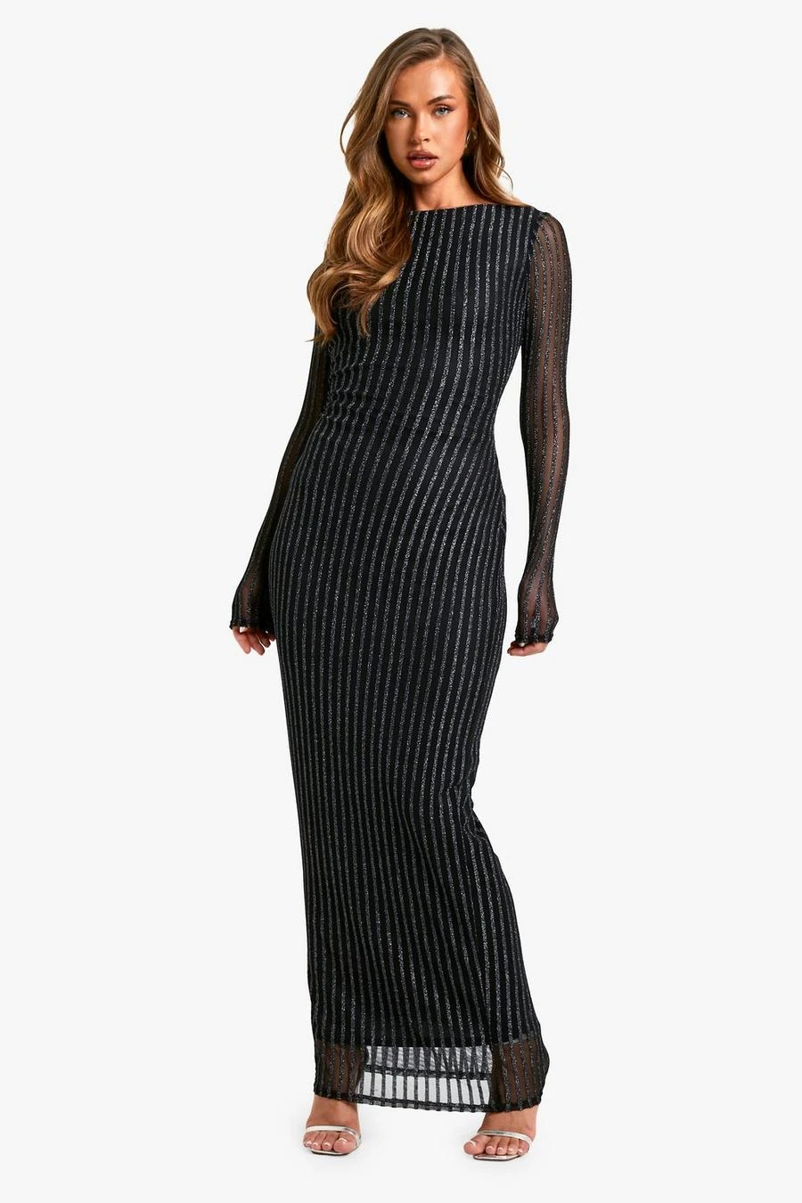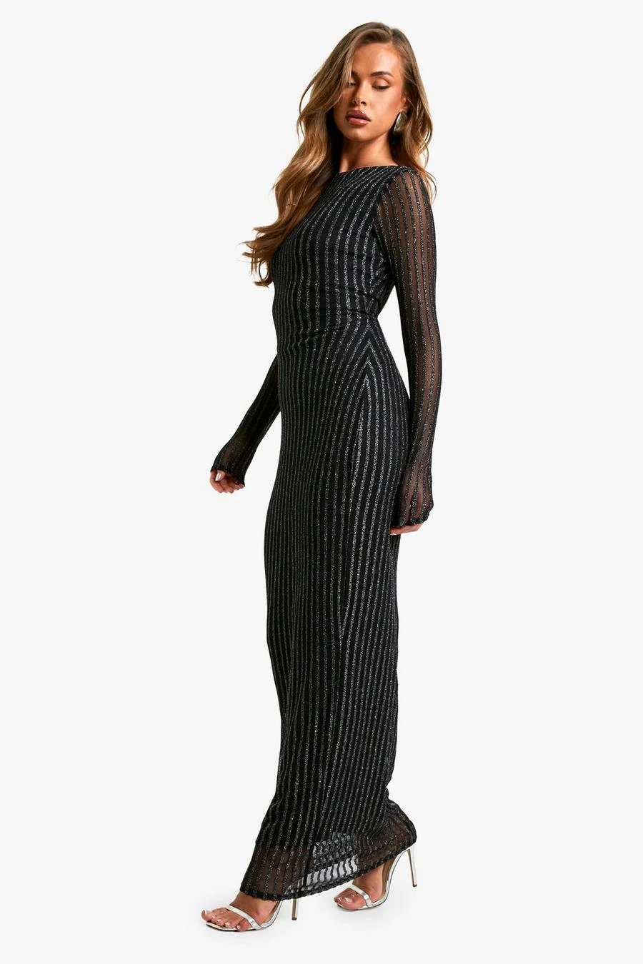 BOOHOO Boat Neck Metallic Rib Maxi Dress