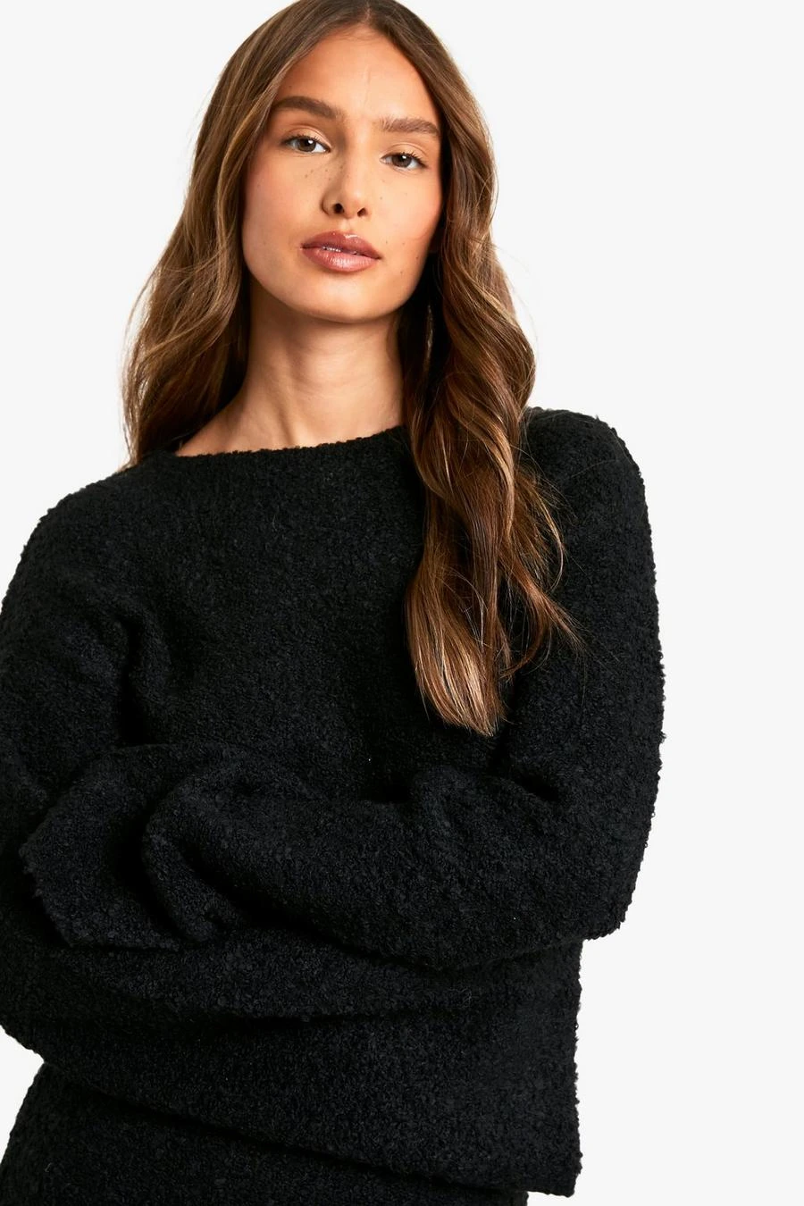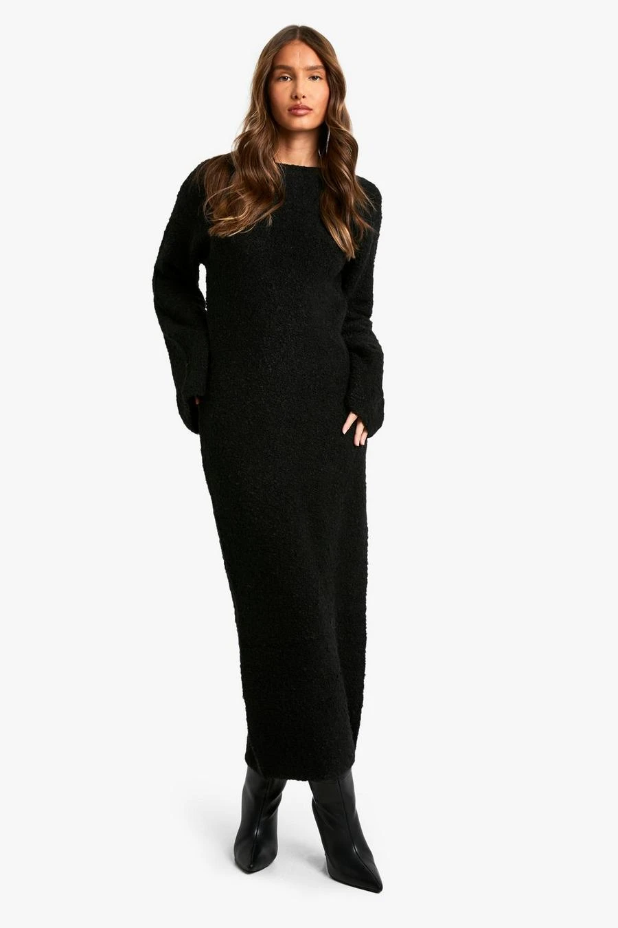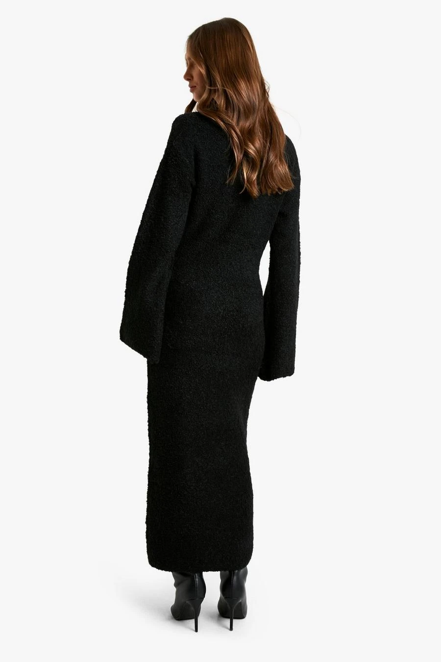 BOOHOO Borg Flare Sleeve Knitted Maxi Dress
