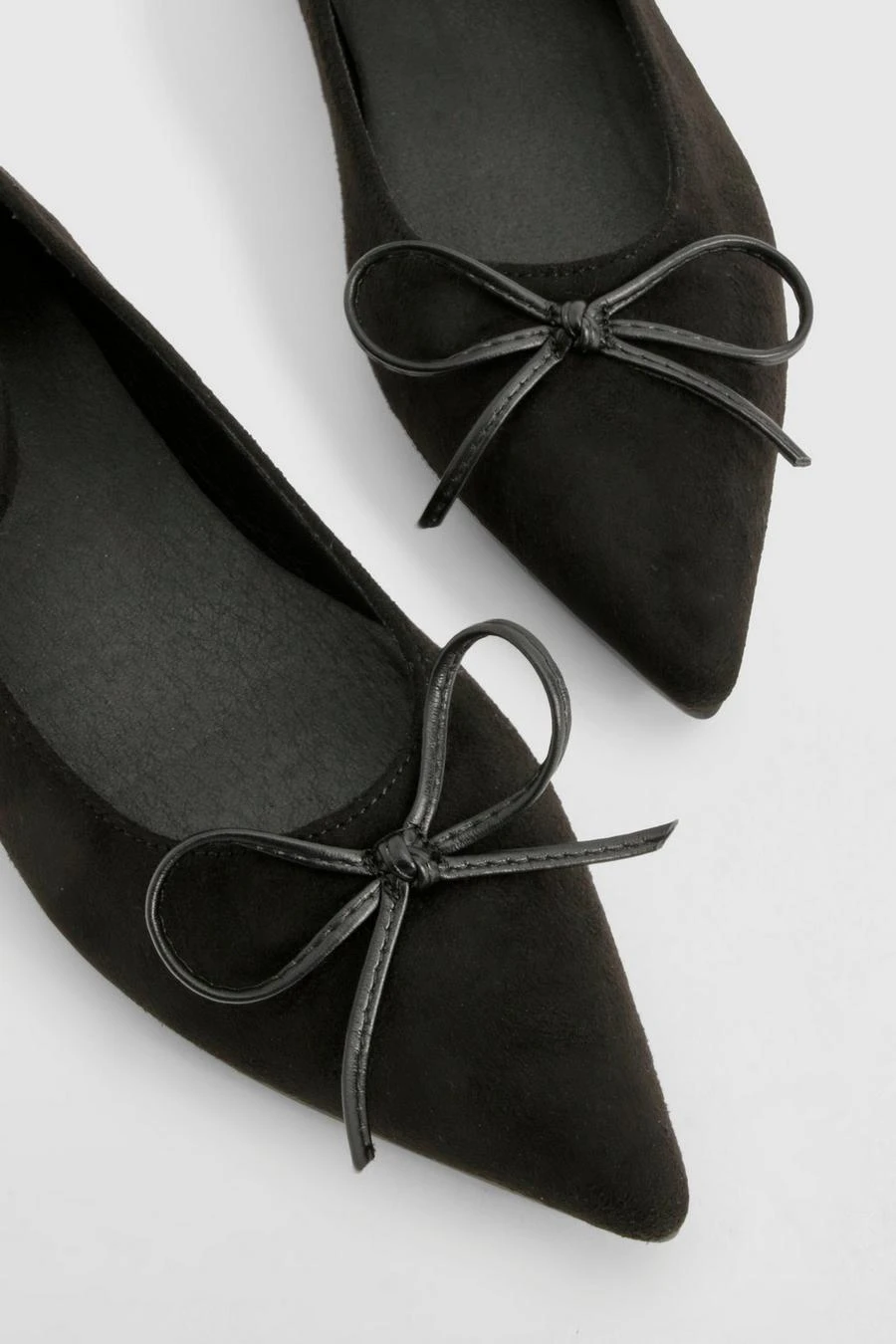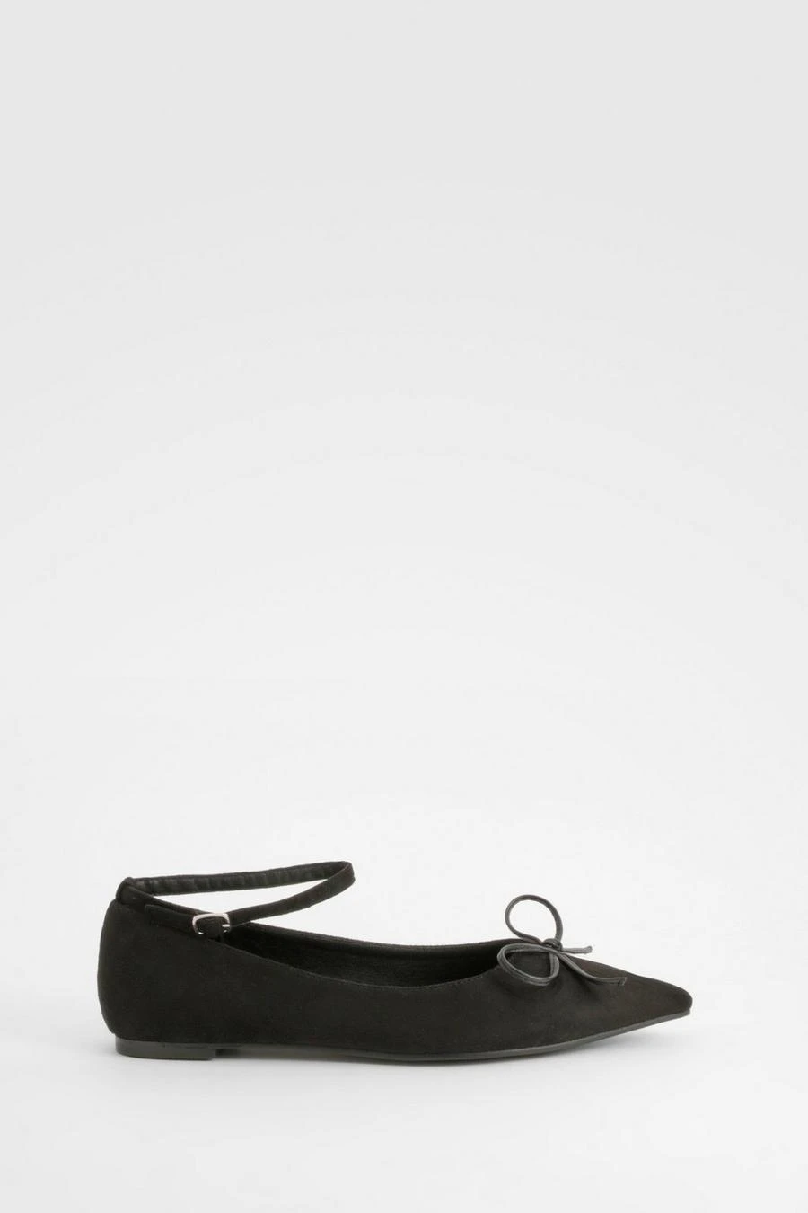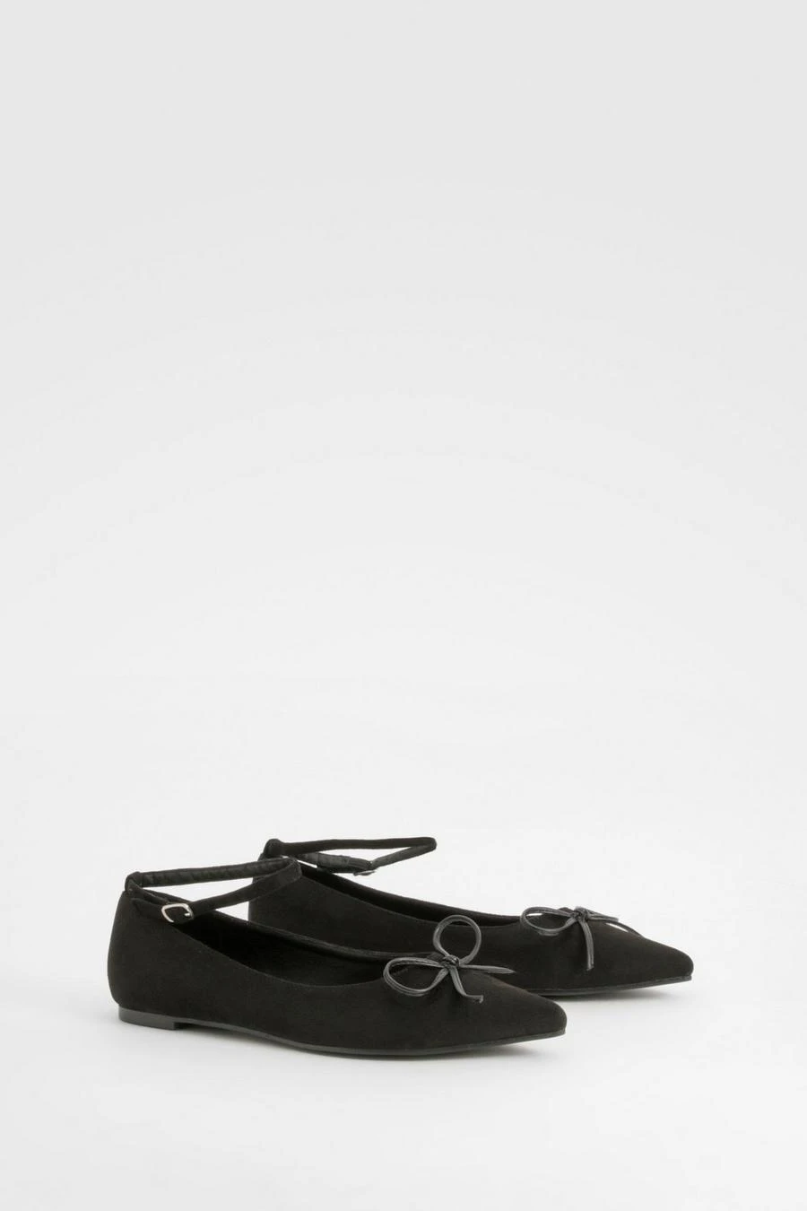 BOOHOO Bow Detail Ankle Strap Pointed Flats