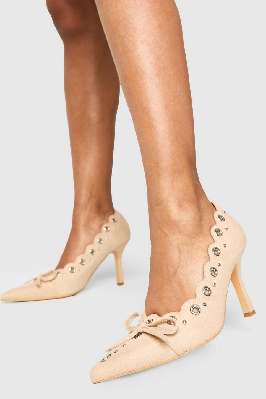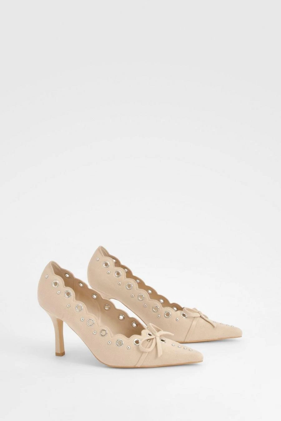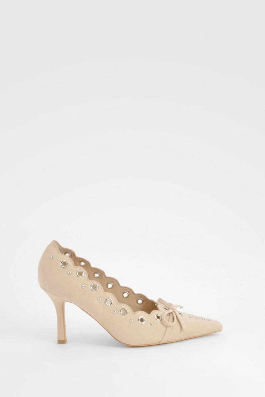 BOOHOO Bow Detail Eyelet Court Heels