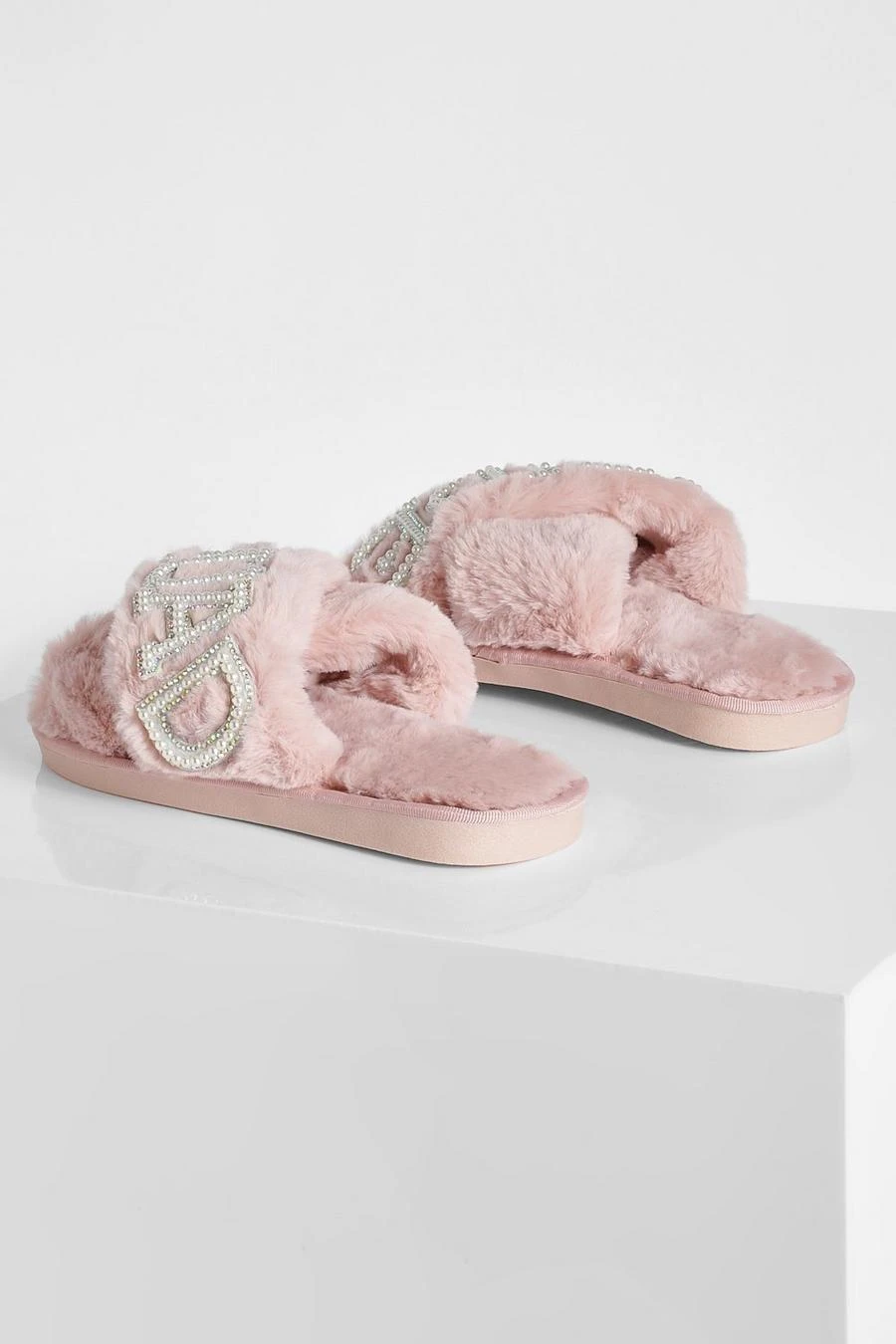 BOOHOO Bride Squad Embellished Slippers