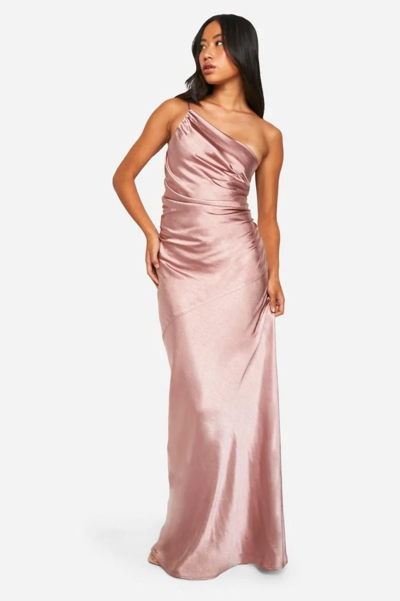 BOOHOO Bridesmaid Satin Asymmetric Maxi Dress