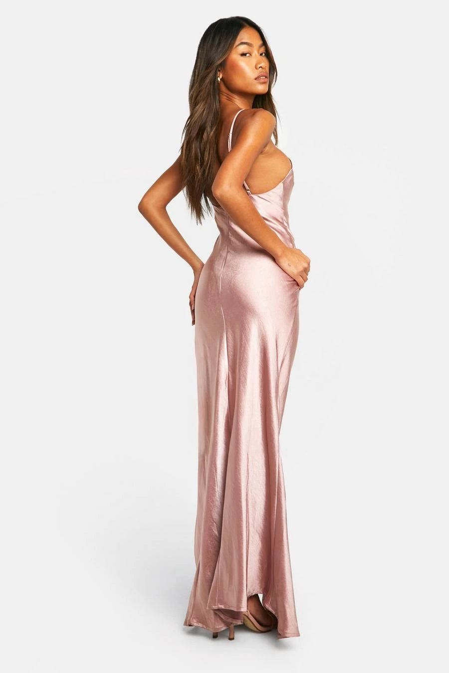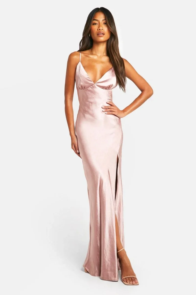 BOOHOO Bridesmaid Satin Strappy Maxi Dress