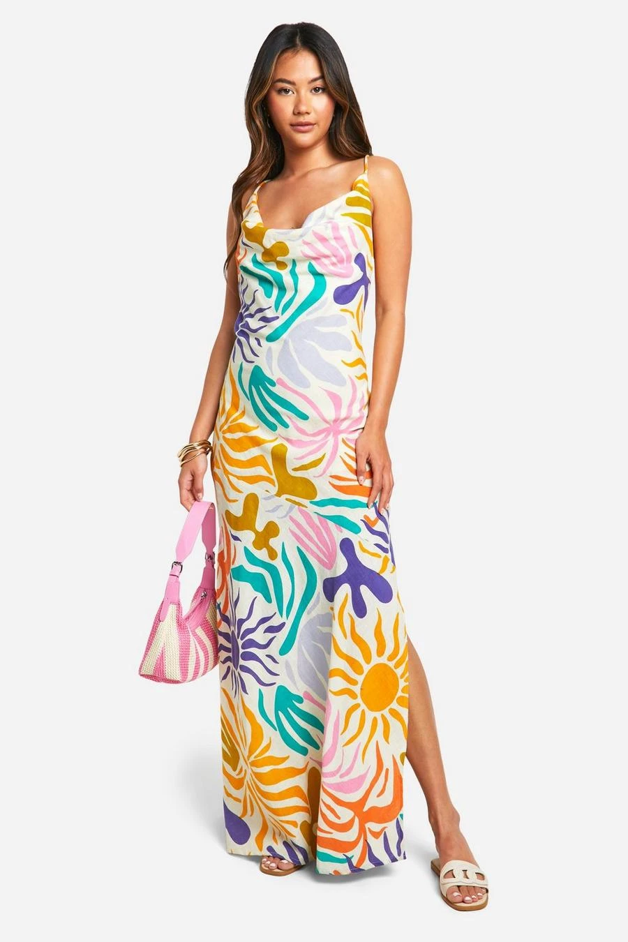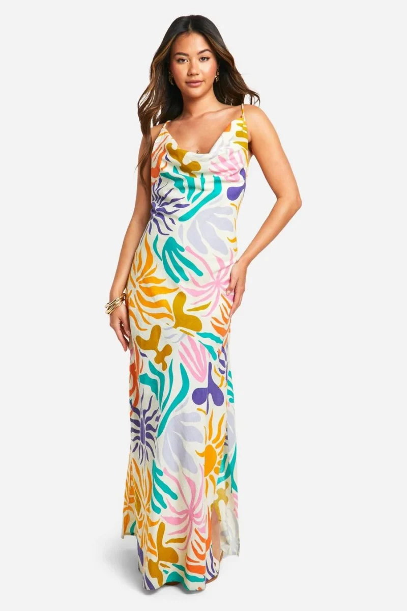 BOOHOO Bright Cotton Cowl Neck Maxi Dress