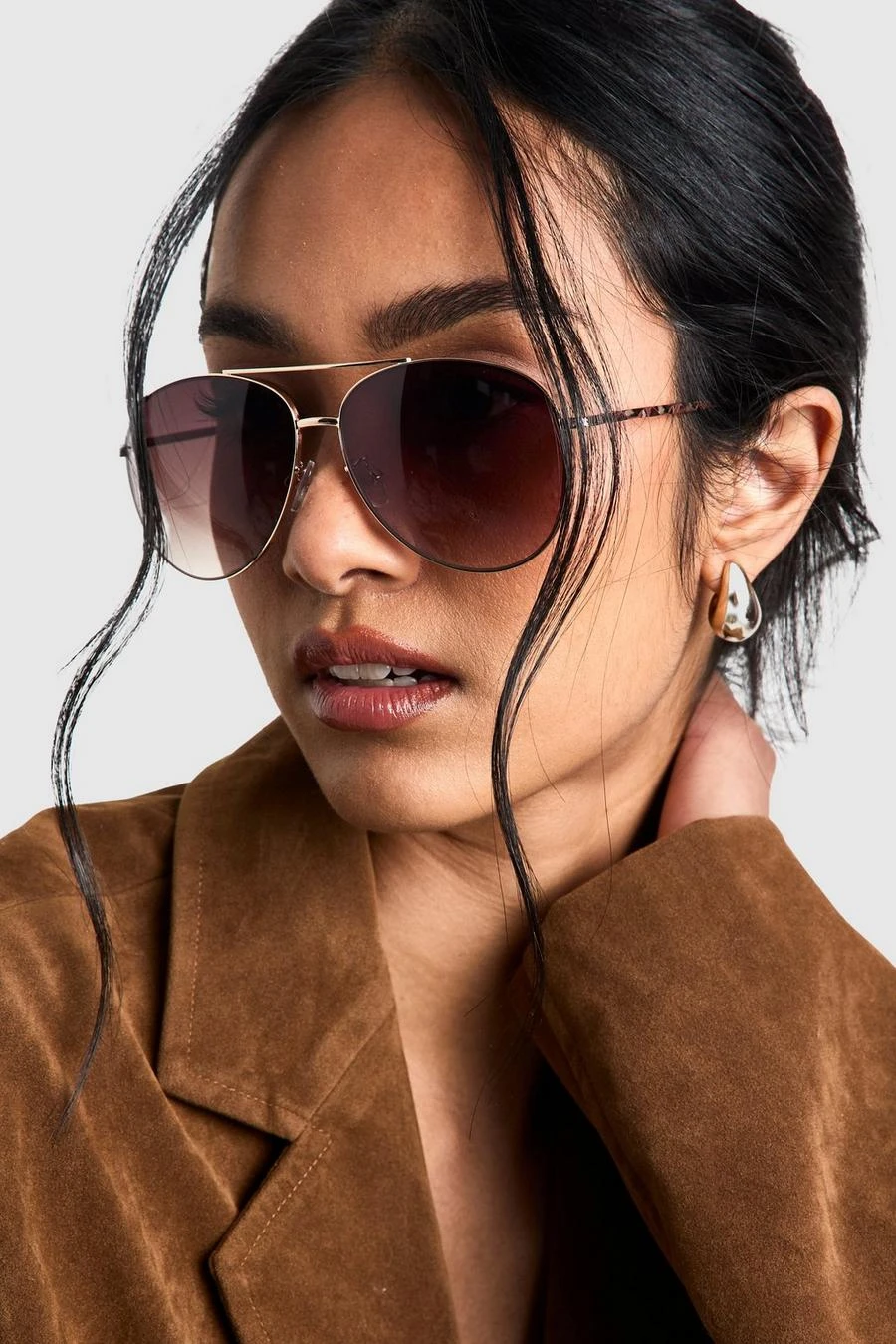 BOOHOO Brown Lenses Aviator Sunglasses
