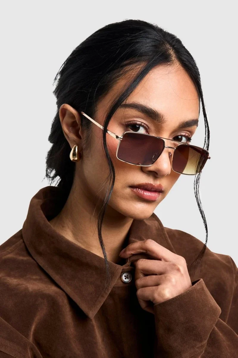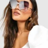 BOOHOO Brown Lenses Square Aviator Sunglasses