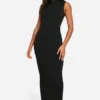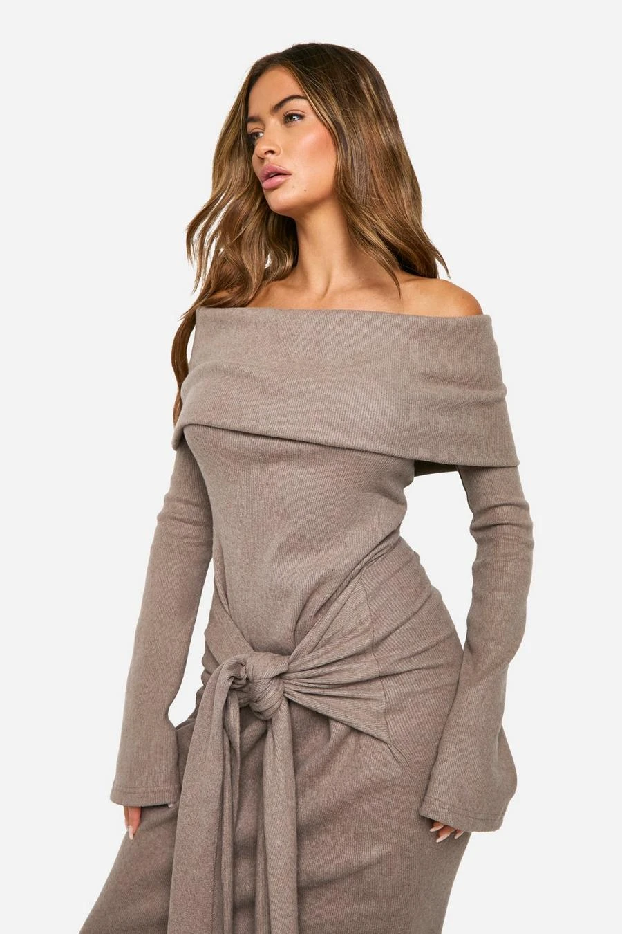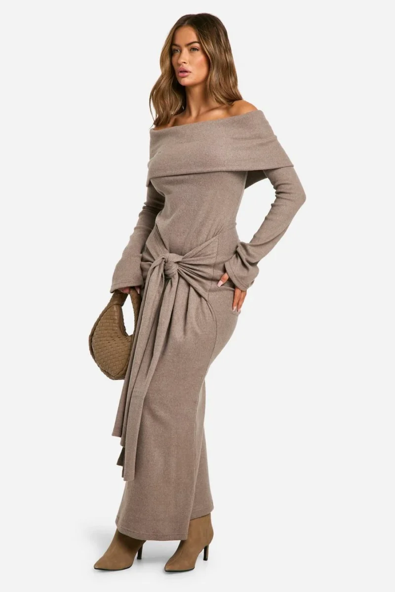 BOOHOO Brushed Rib Bardot Maxi Dress