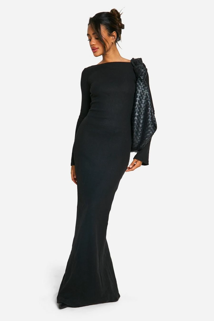 BOOHOO Brushed Rib Strappy Back Maxi Dress