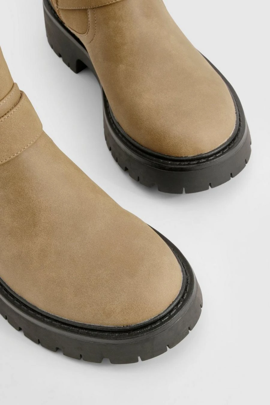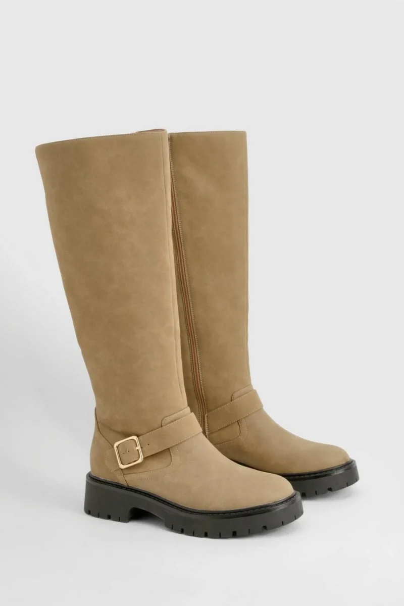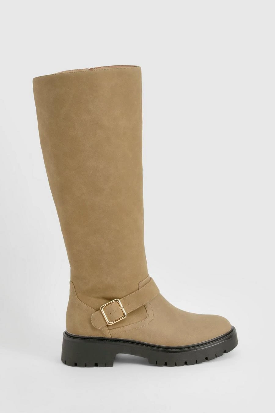 BOOHOO Buckle Detail Chunky Knee High Boot