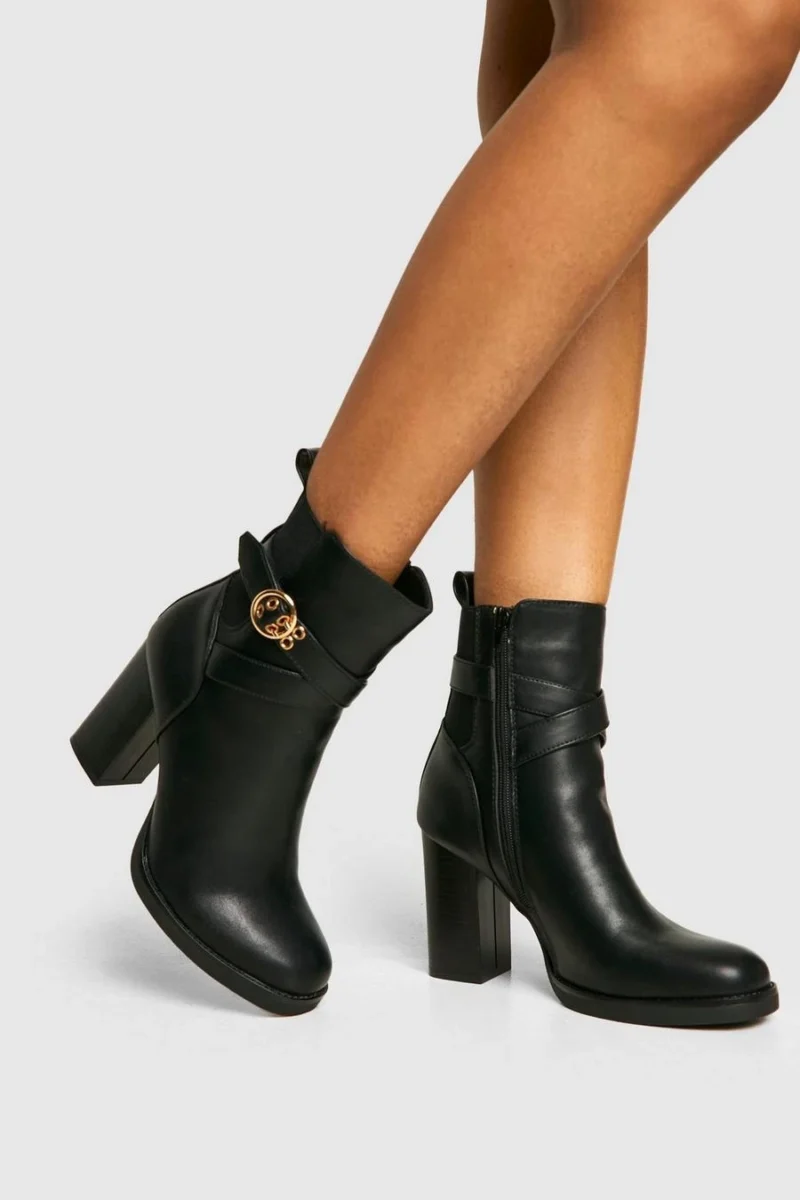 BOOHOO Buckle Detail Heeled Chelsea Boot