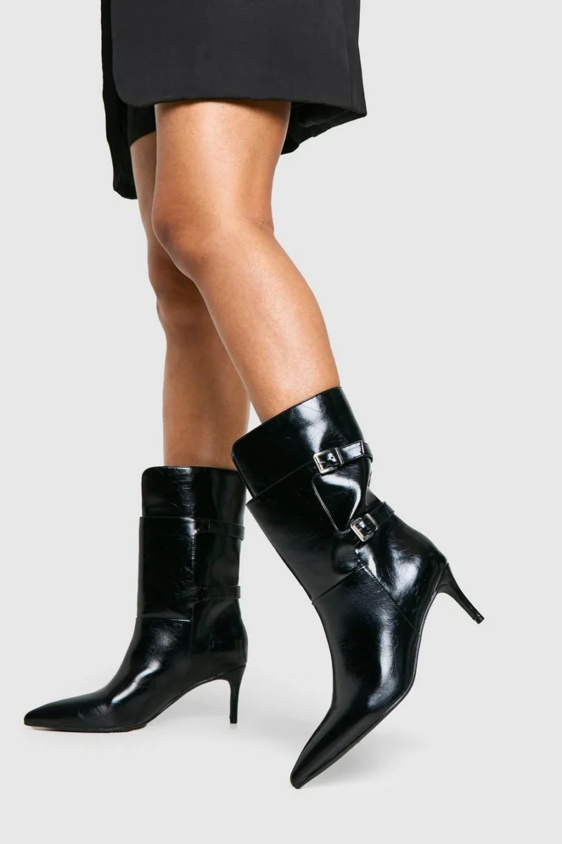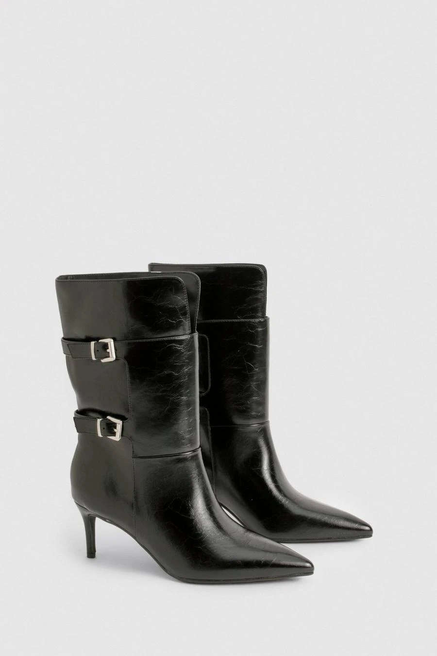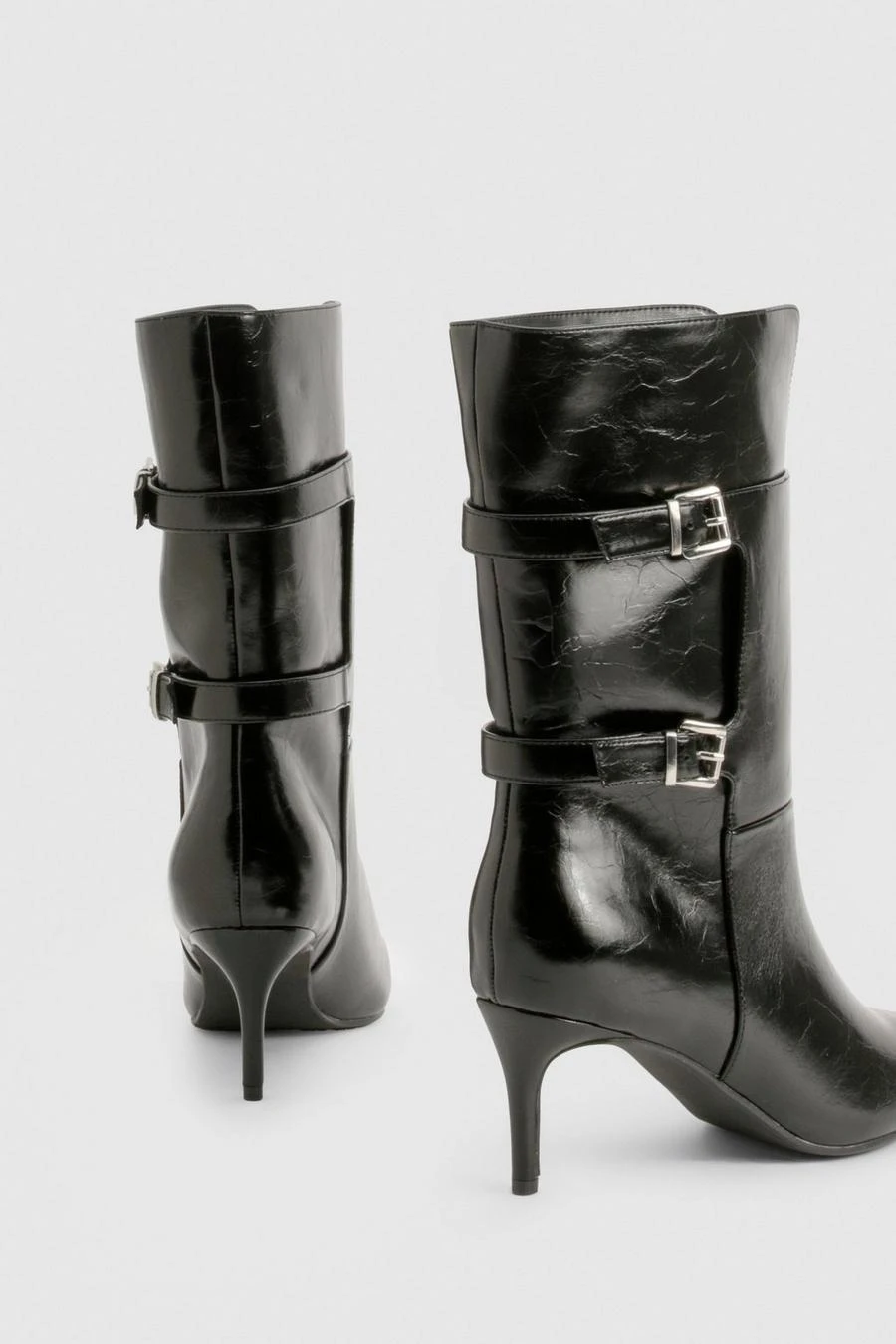 BOOHOO Buckle Detail Stiletto Calf High Boots