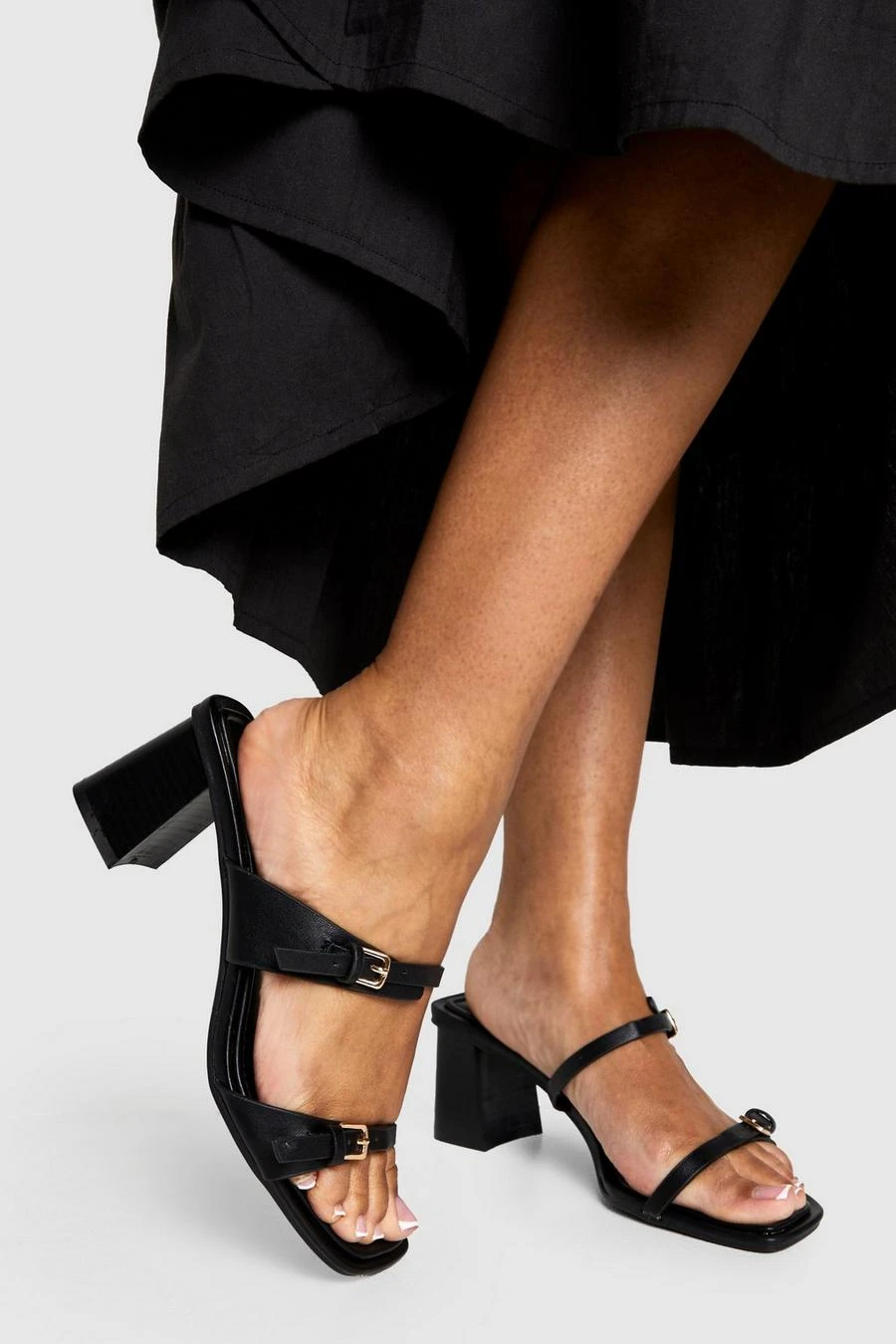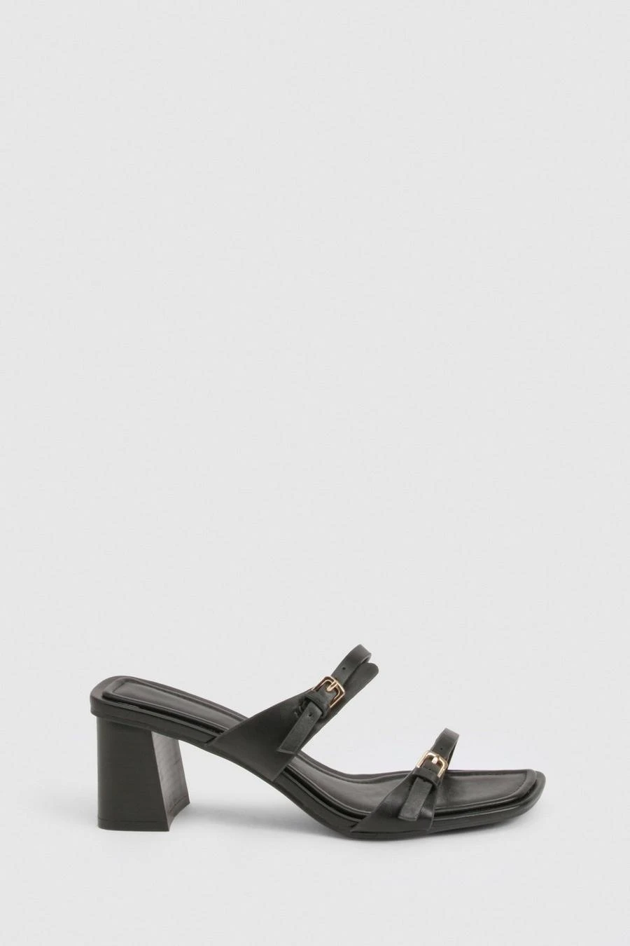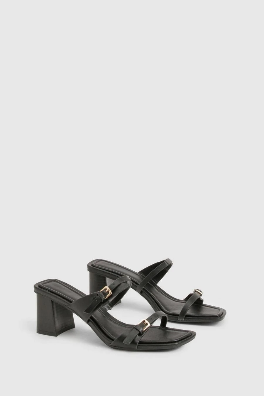 BOOHOO Buckle Double Strap Heeled Mules