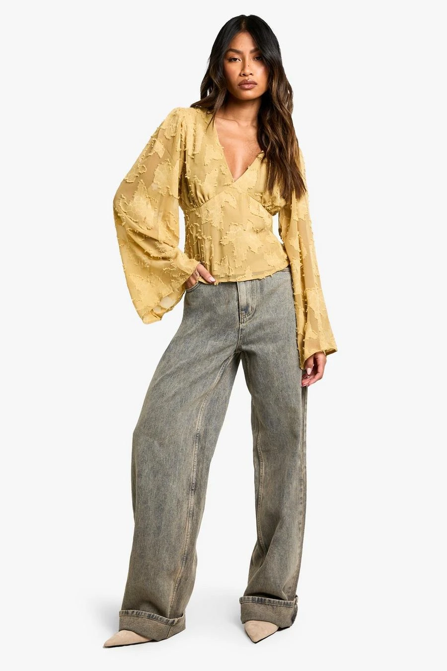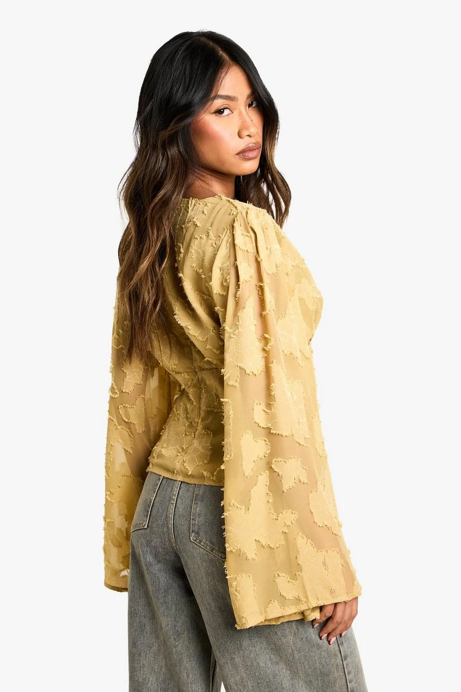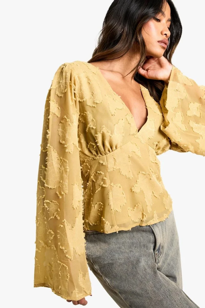 BOOHOO Burnout Floral Angel Sleeve Blouse