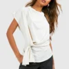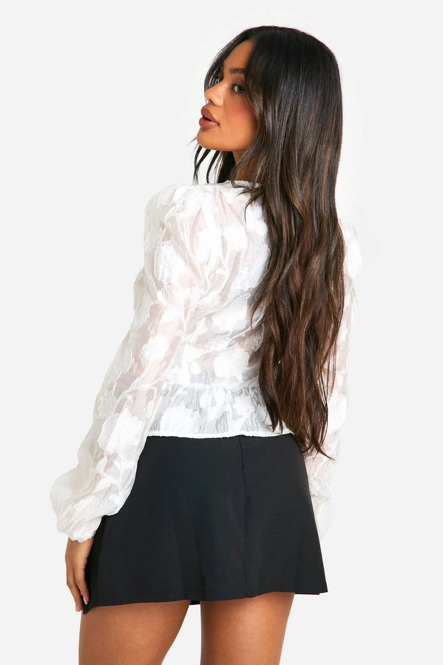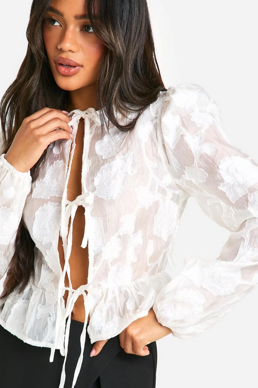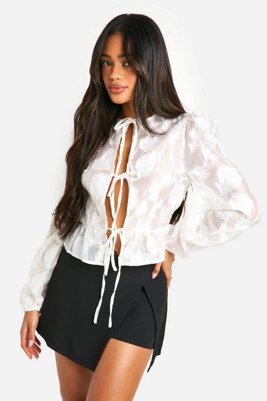 BOOHOO Burnout Volume Sleeve Tie Front Blouse