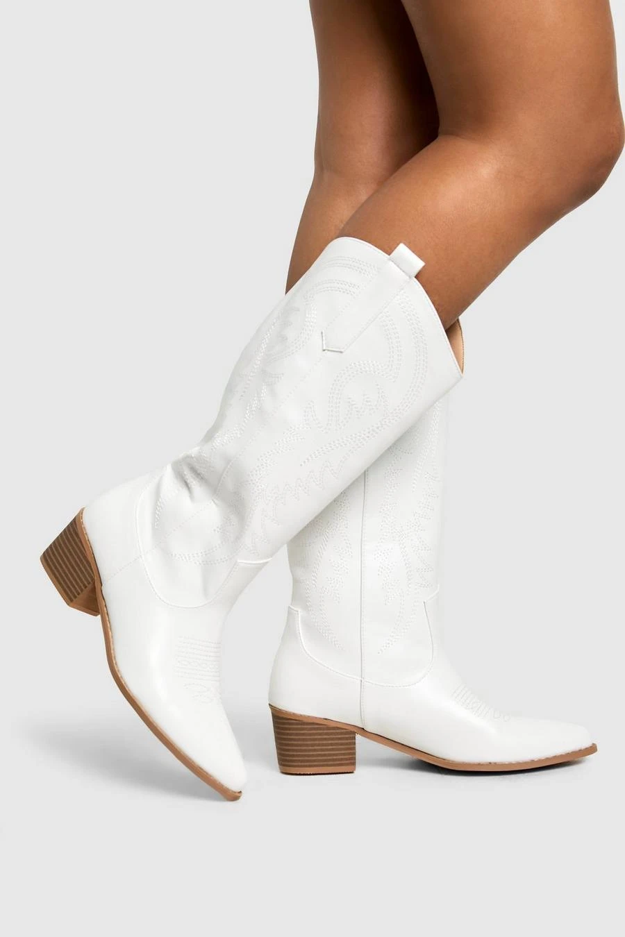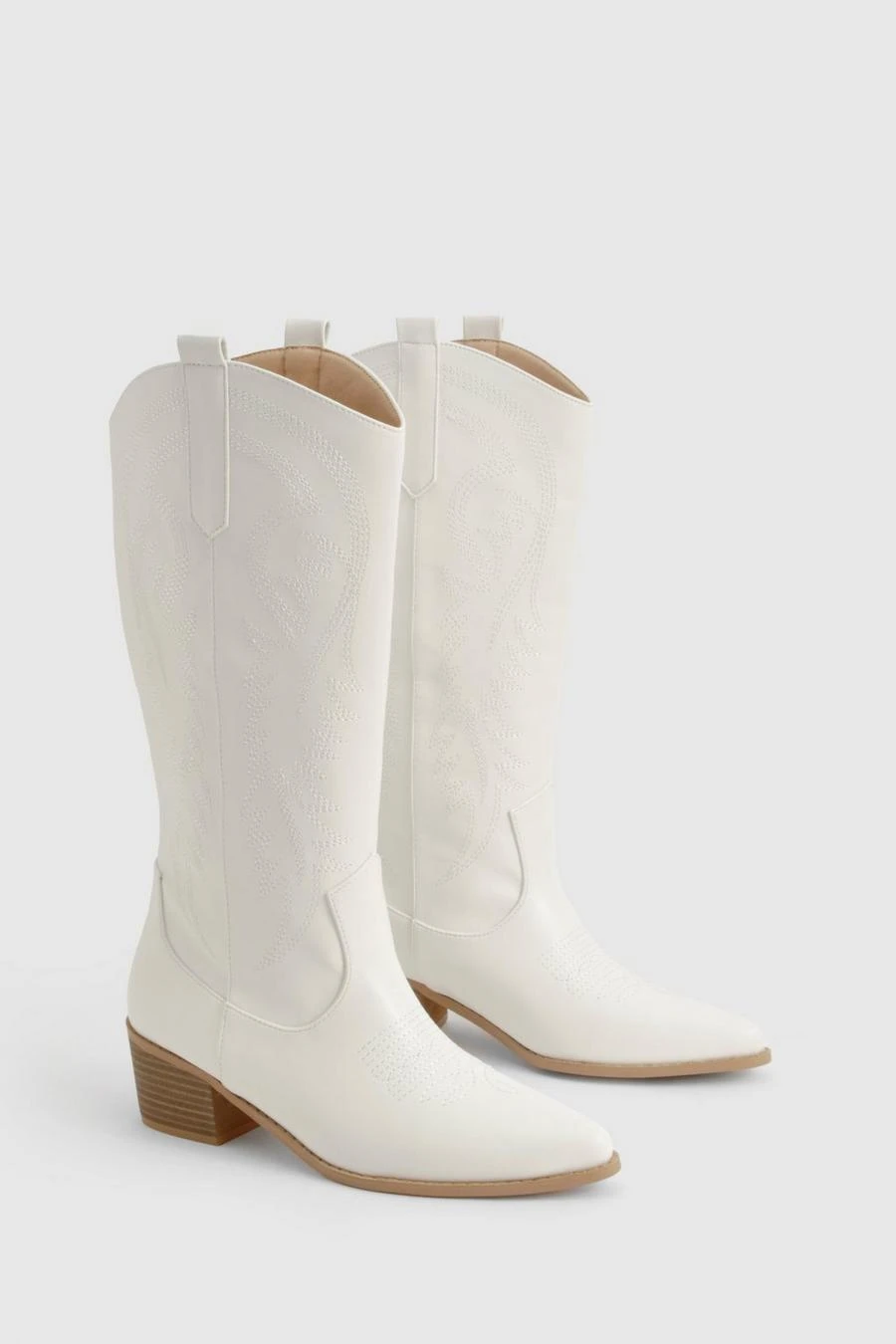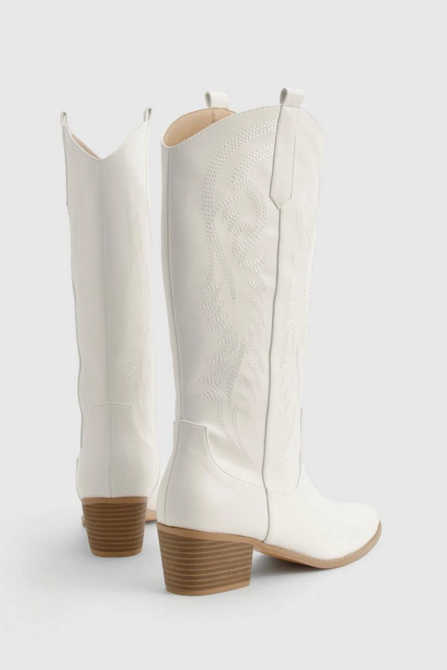 BOOHOO Calf Detail Embroidered Western Cowboy Boots