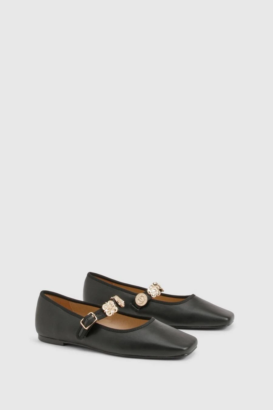 BOOHOO Charm Detail Mary Jane Ballet Flats