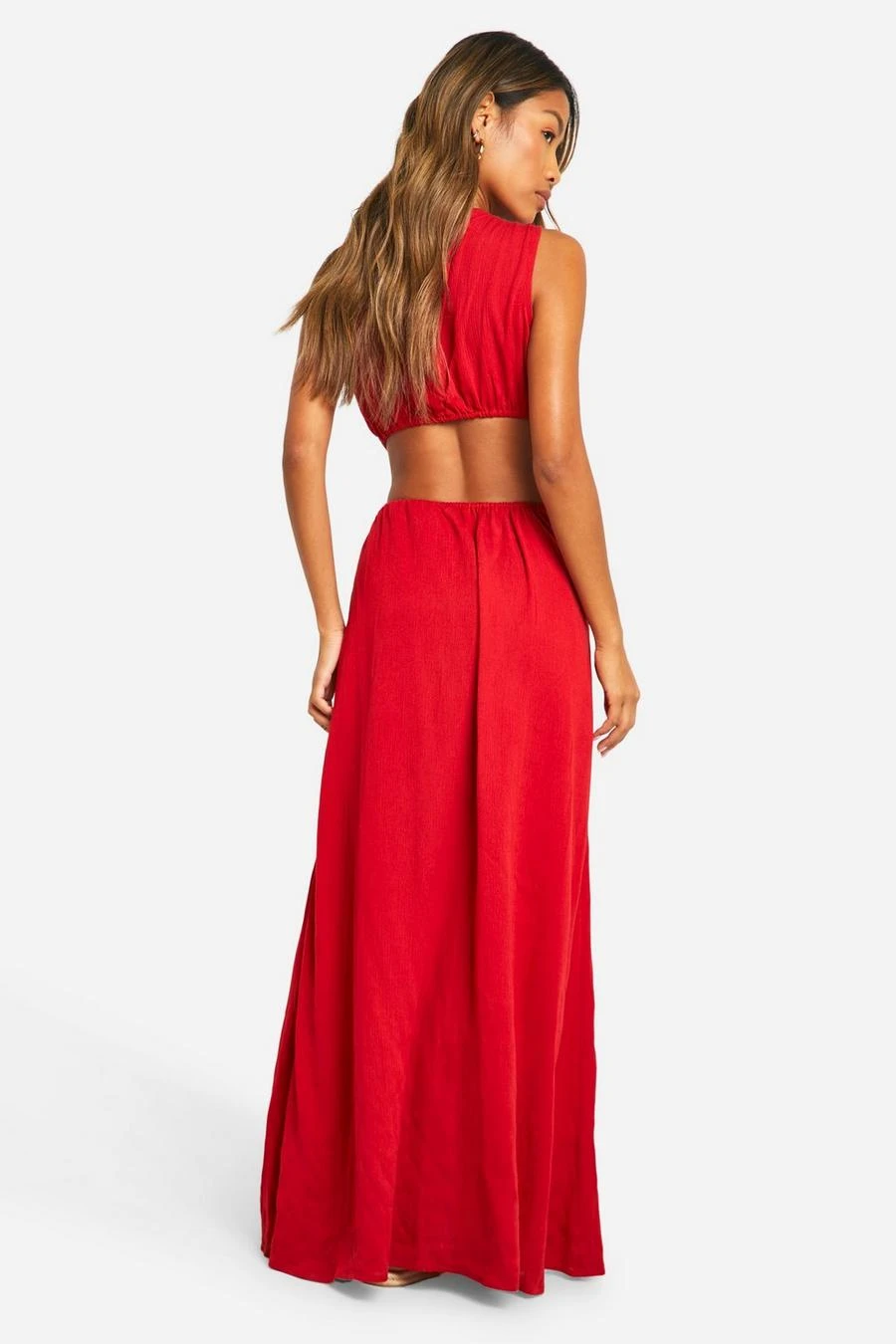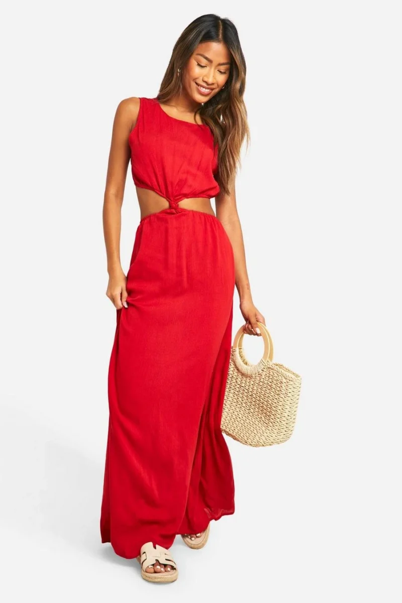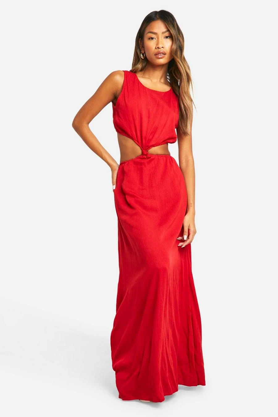 BOOHOO Cheesecloth Knot Front Maxi Dress
