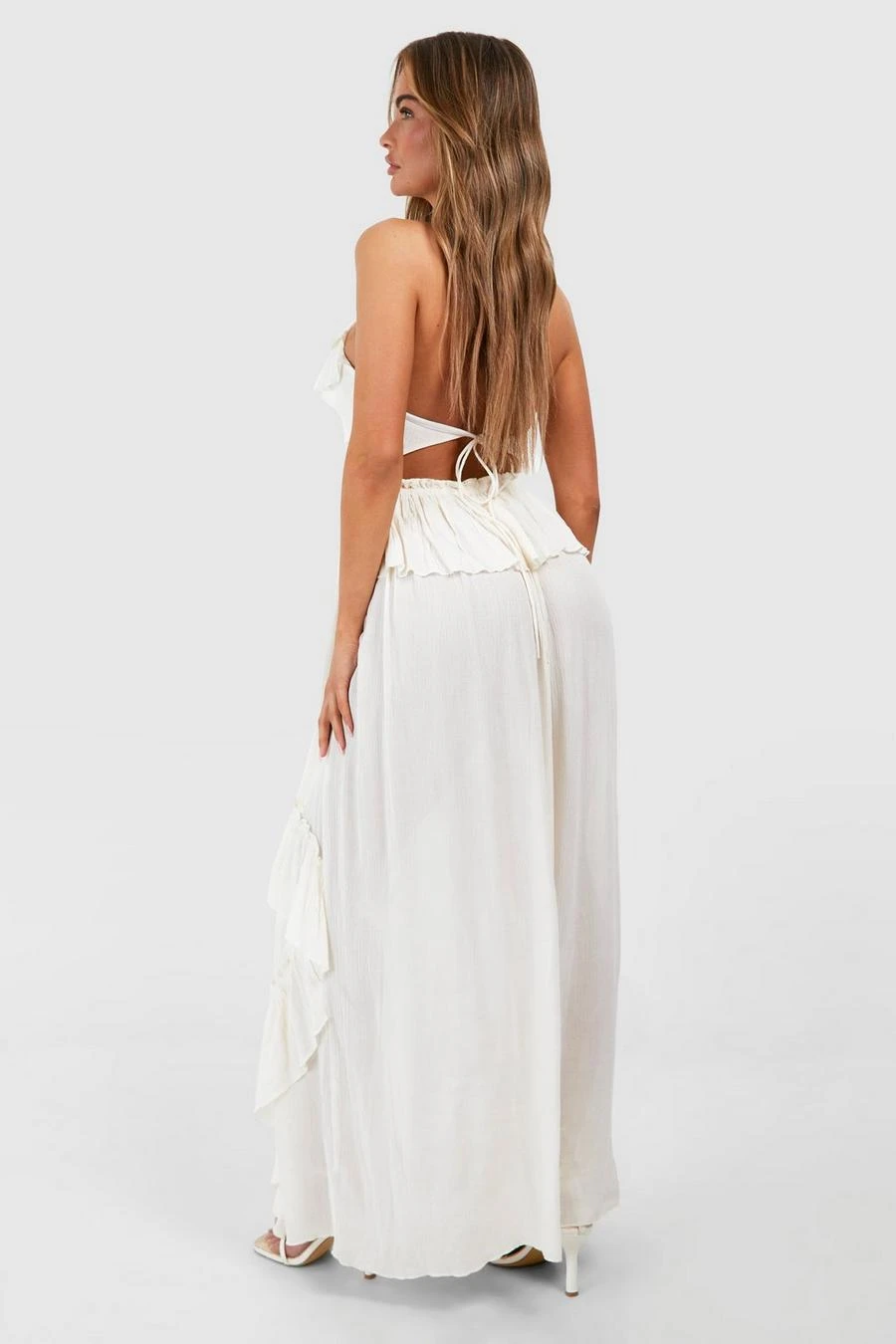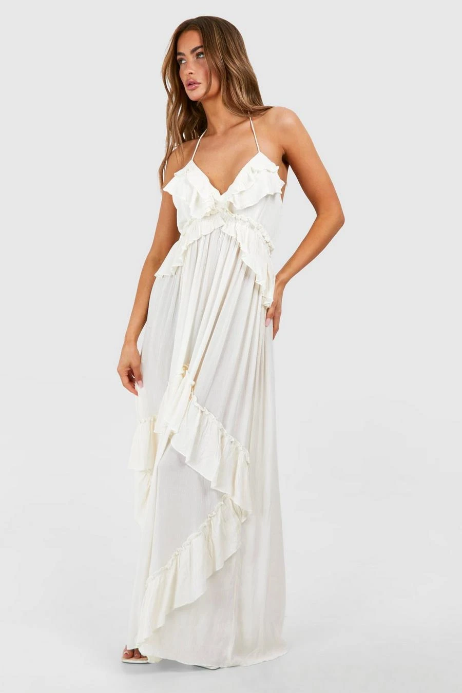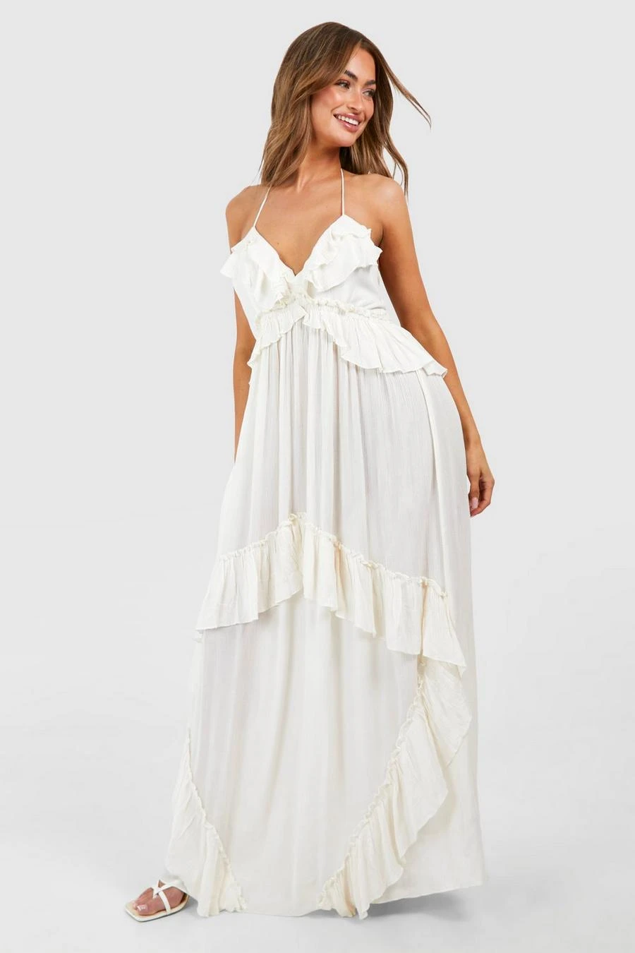 BOOHOO Cheesecloth Ruffle Smock Maxi Dress