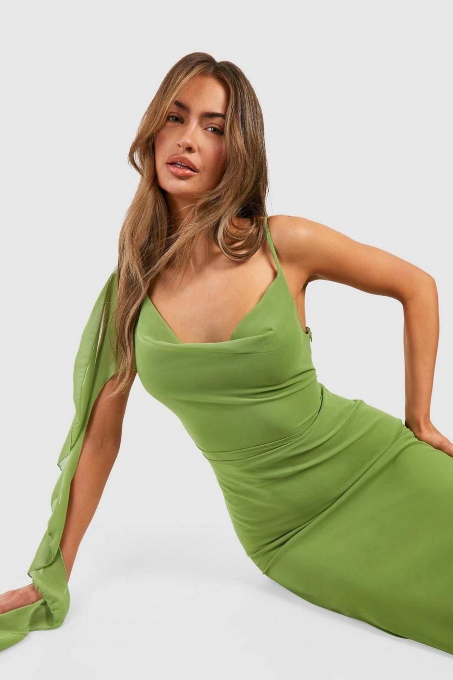 BOOHOO Chiffon Cowl Neck Maxi Dress