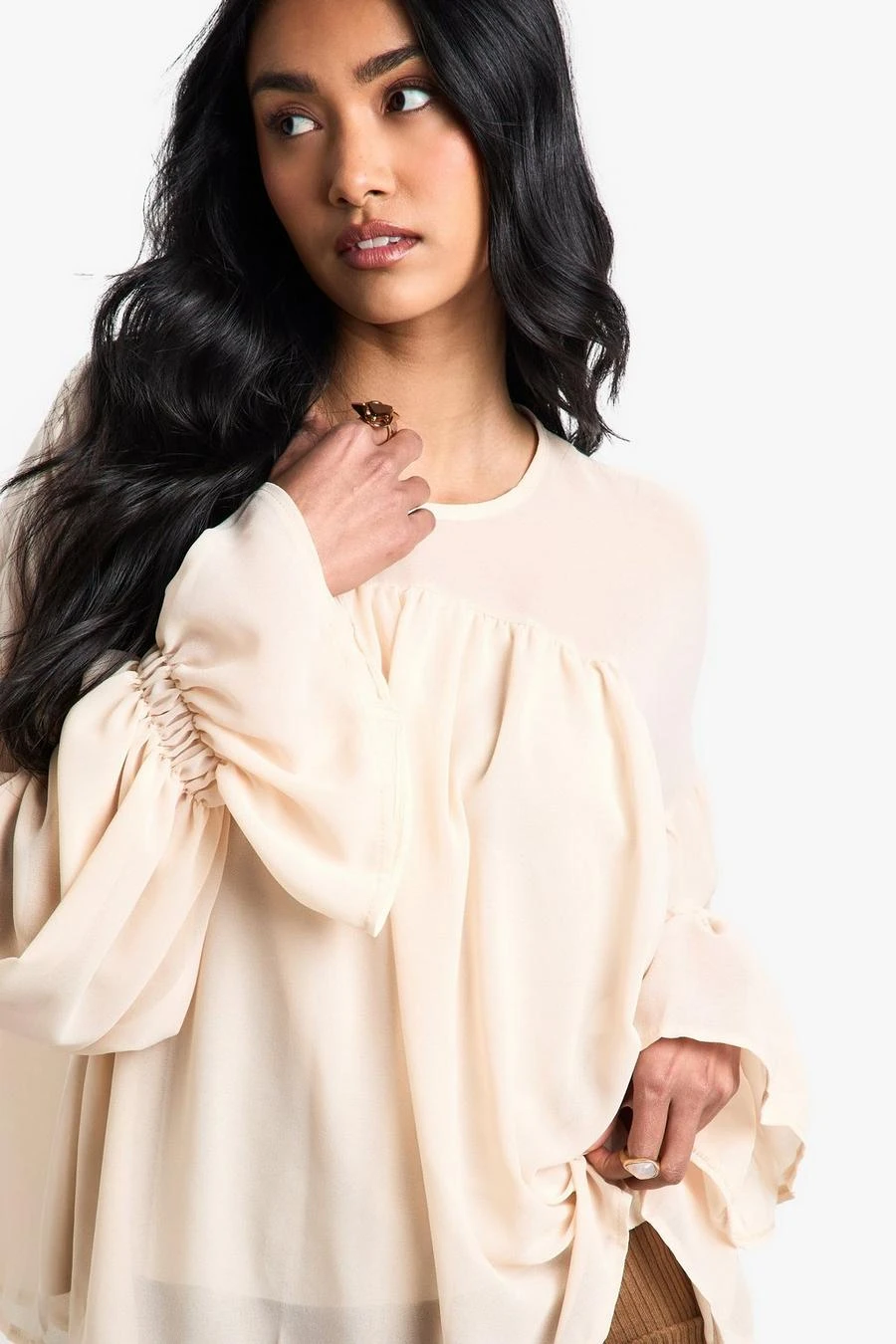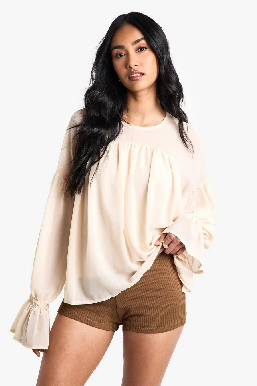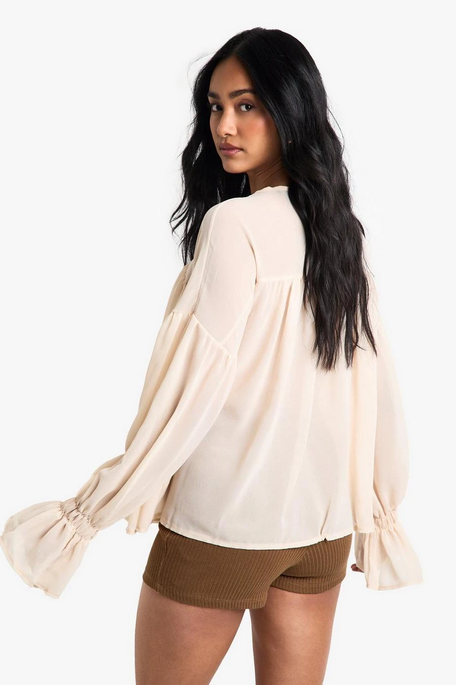 BOOHOO Chiffon Drape Detail Long Sleeve Blouse