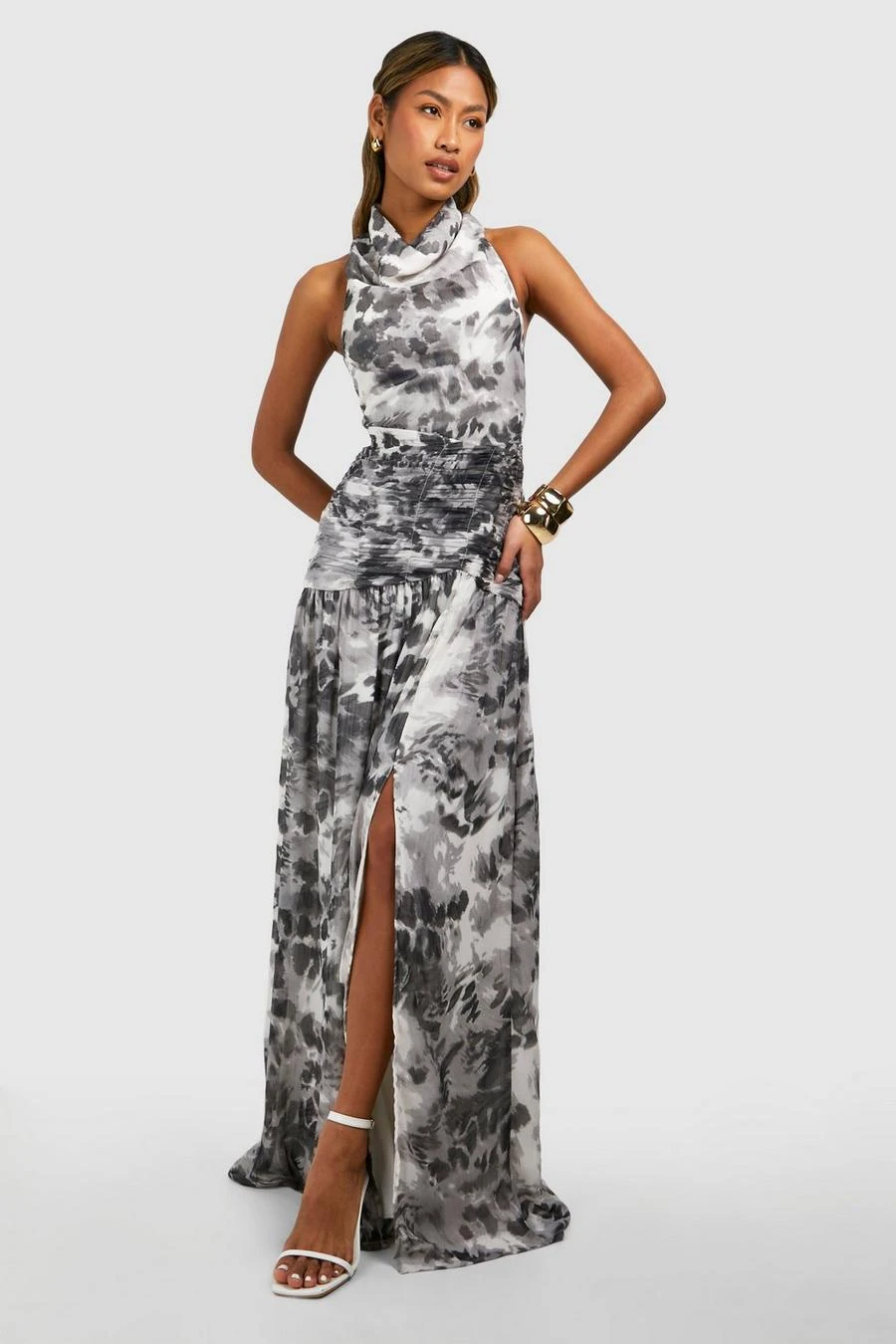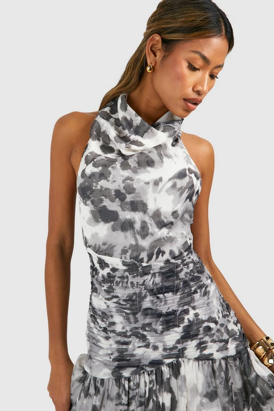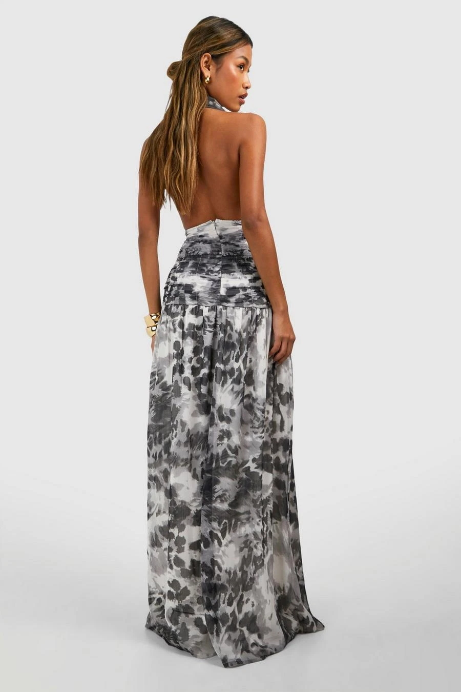 BOOHOO Chiffon Maxi Leopard Print Halterneck Dress
