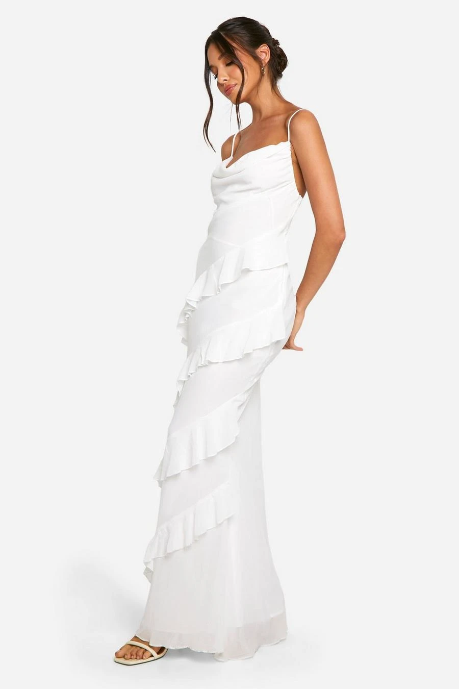 BOOHOO Chiffon Ruffle Cowl Maxi Dress