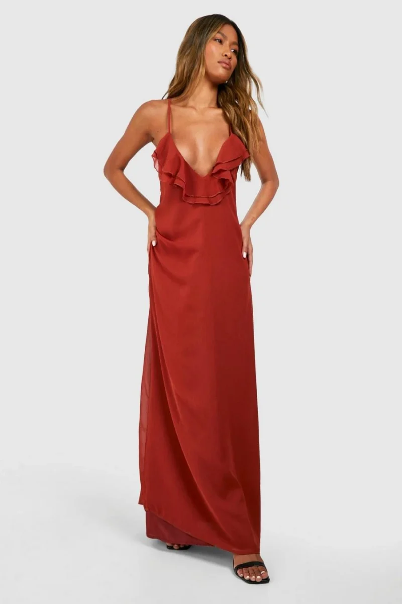 BOOHOO Chiffon Ruffle Midaxi Dress