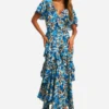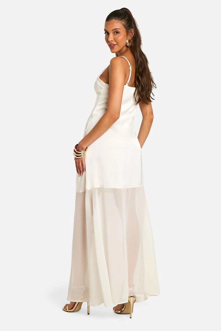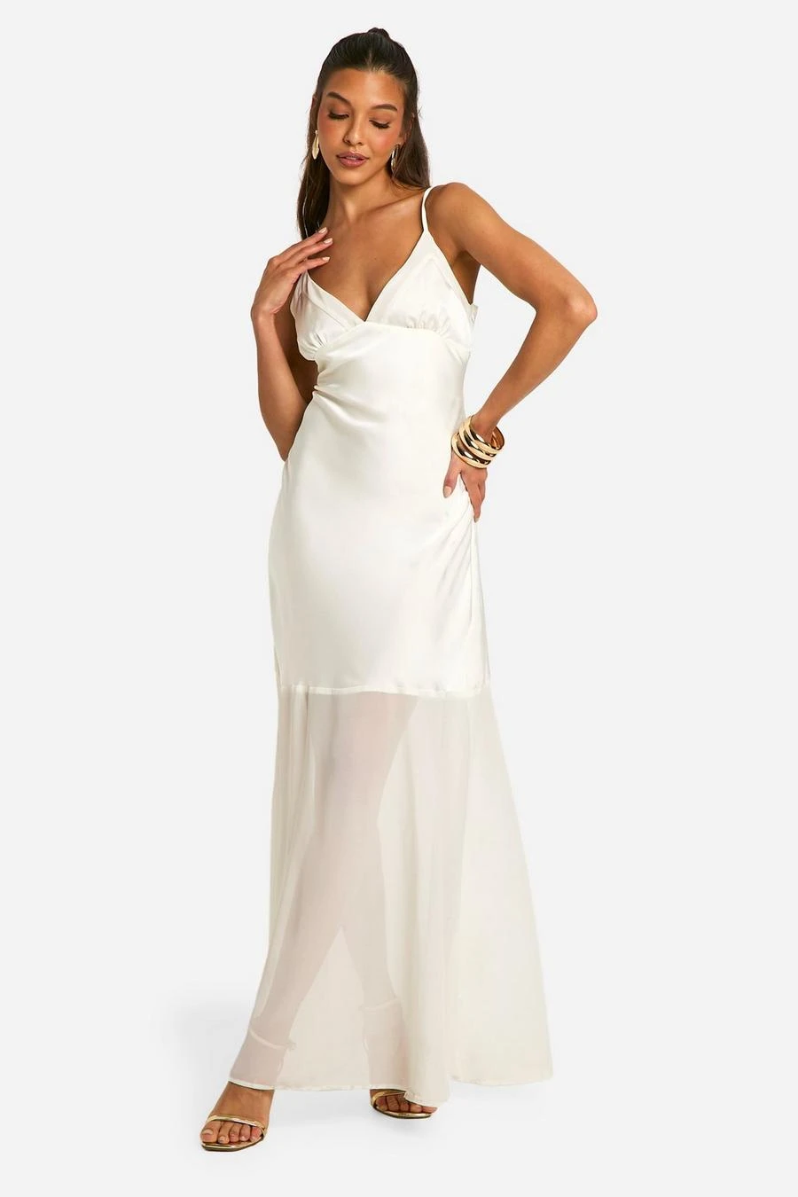 BOOHOO Chiffon Satin V Neck Maxi Dress