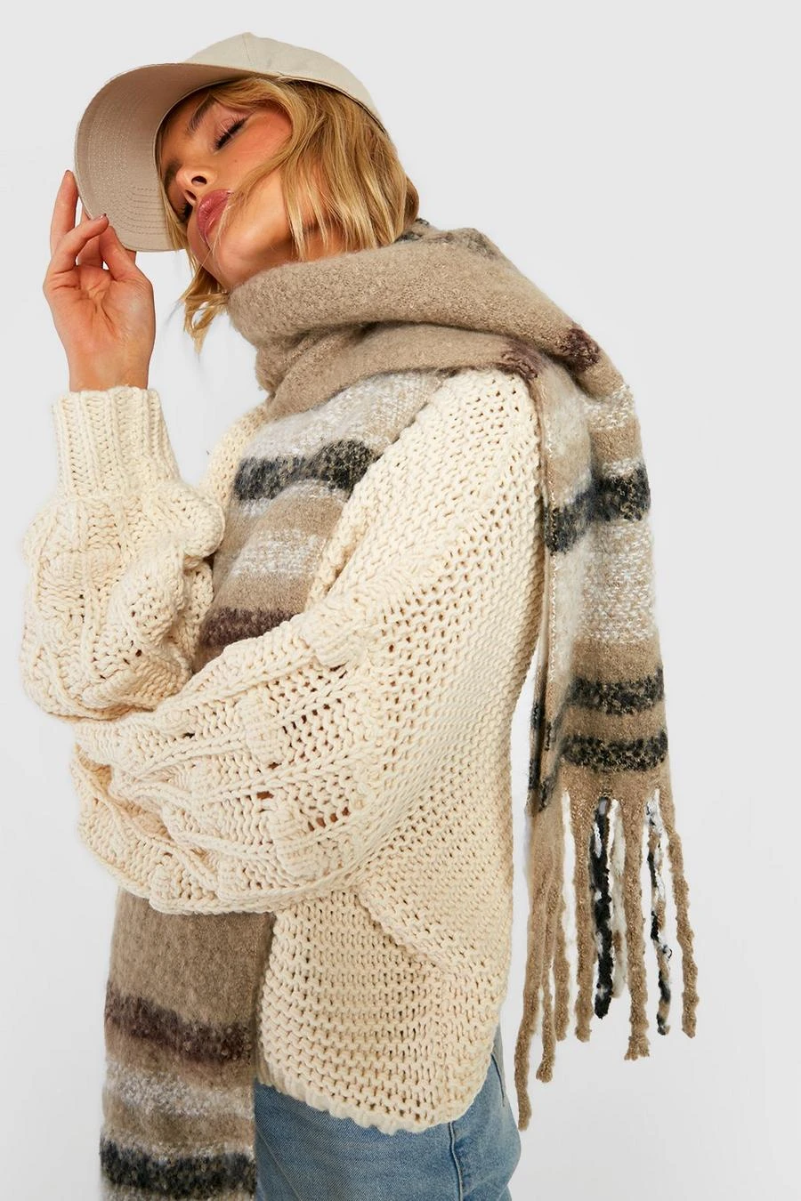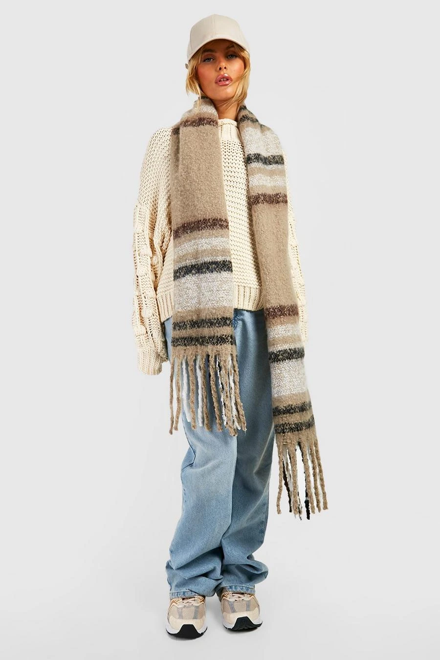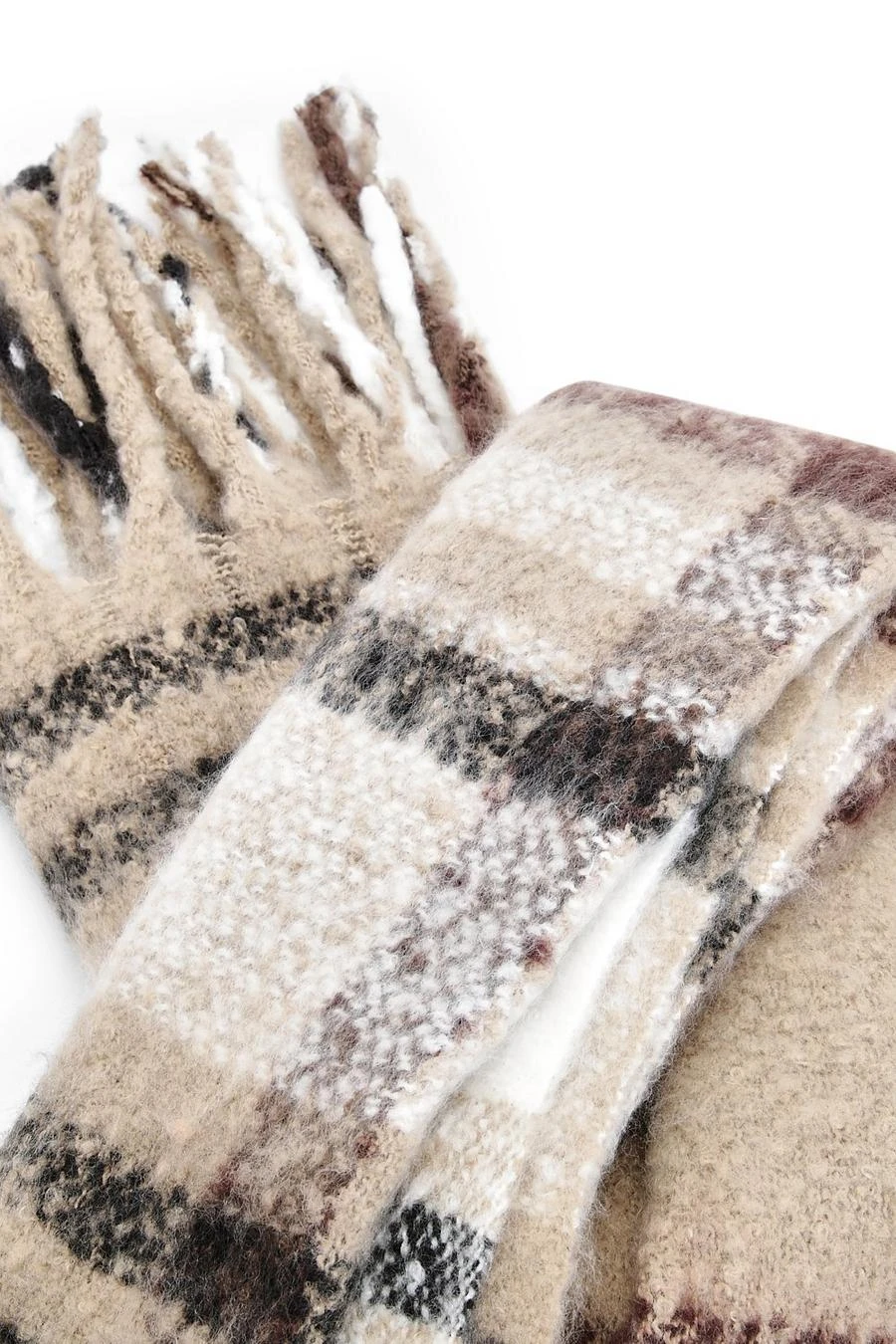 BOOHOO Chunky Brown & Black Check Tassel Scarf
