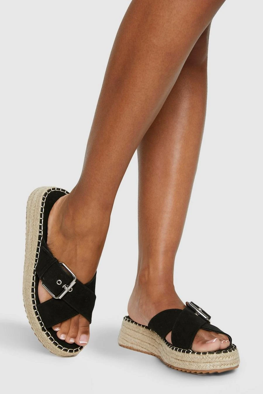 BOOHOO Chunky Buckle Crossover Flatforms