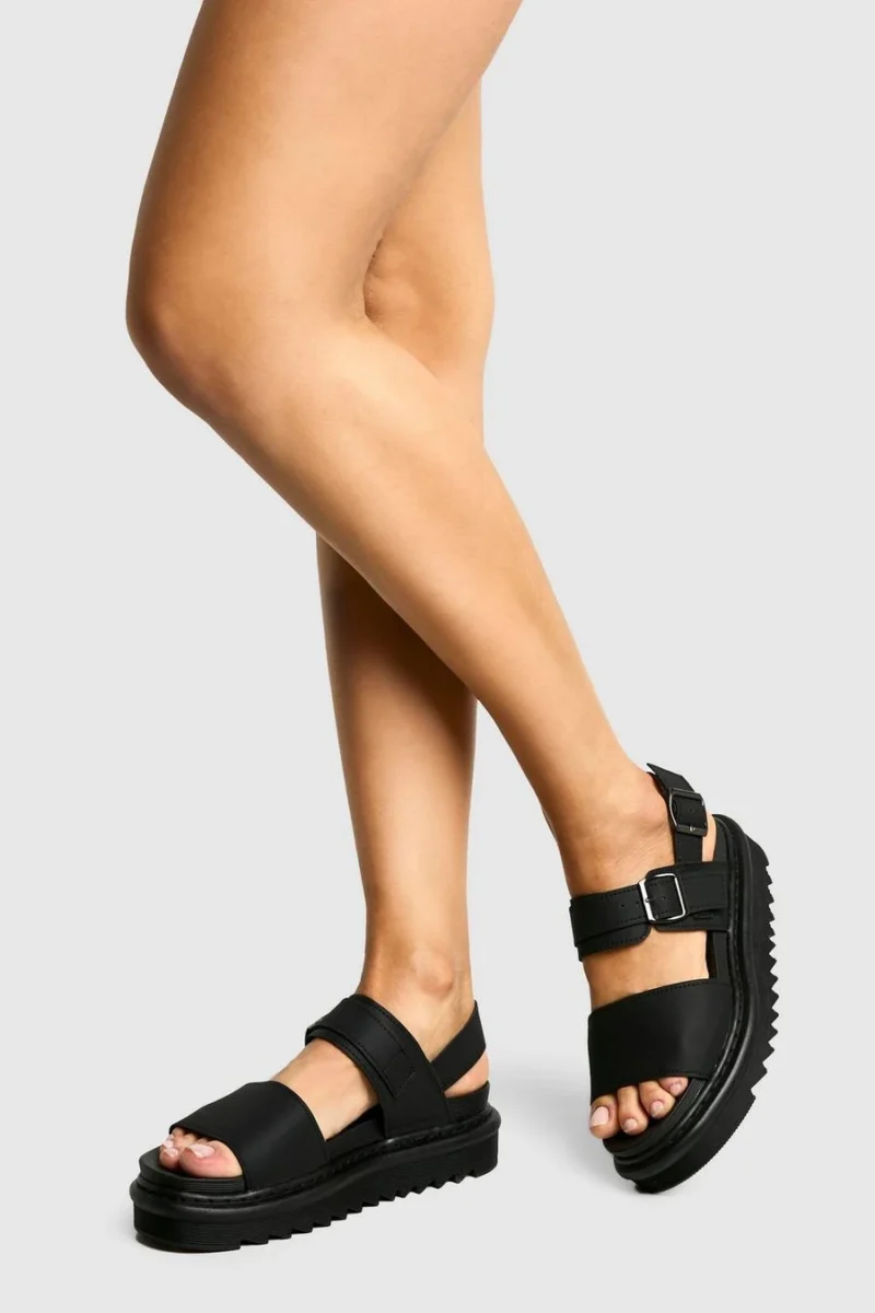 BOOHOO Chunky Buckle Detail Flatform Sandals