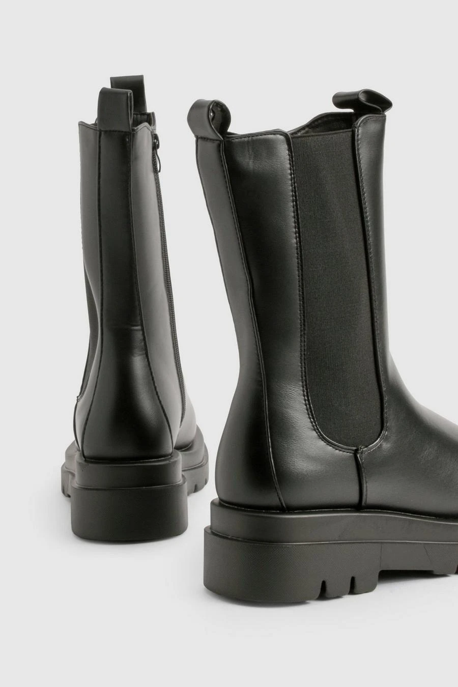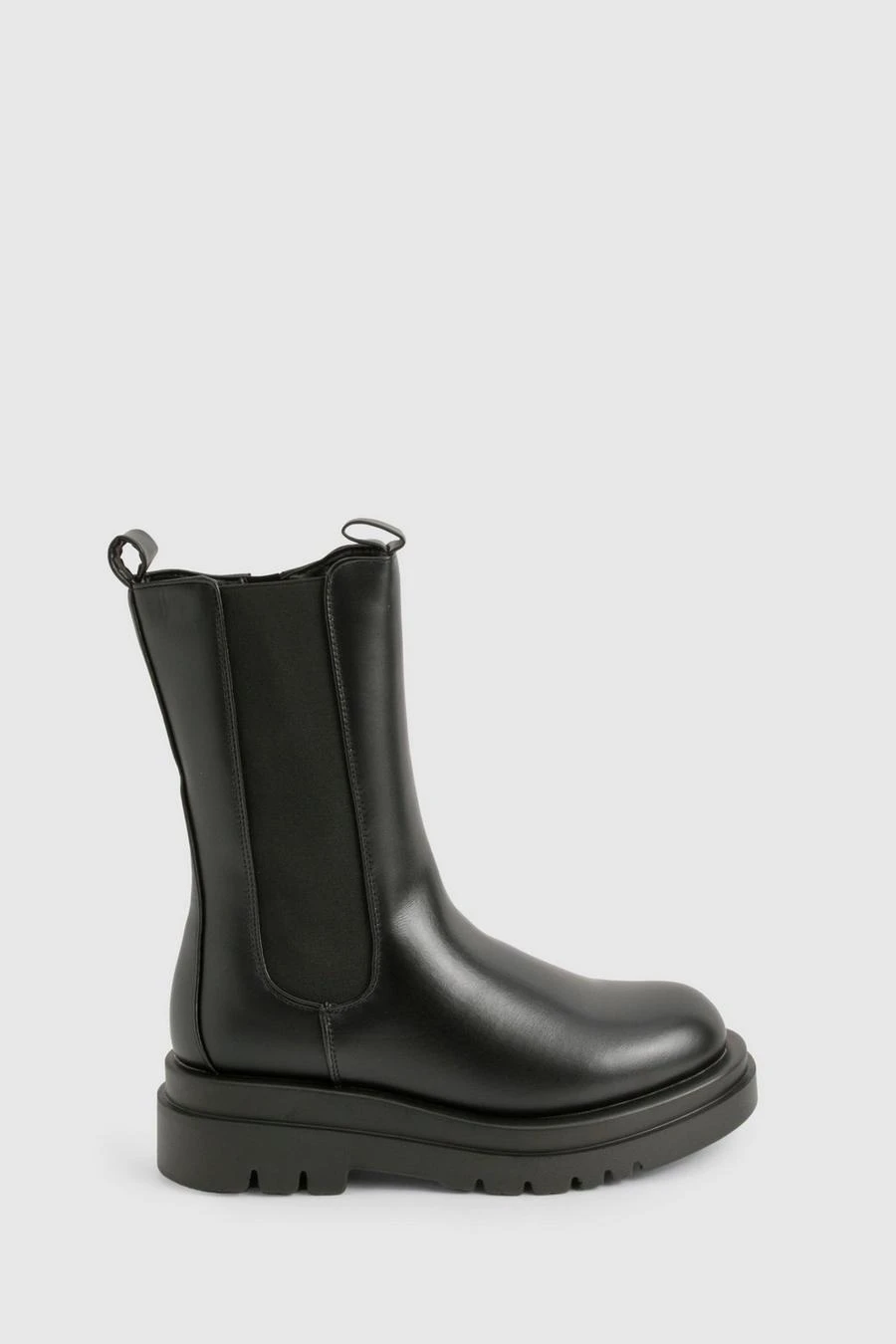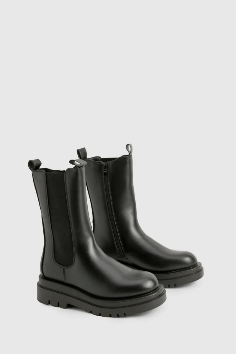 BOOHOO Chunky Cleated Calf High Chelsea Boots